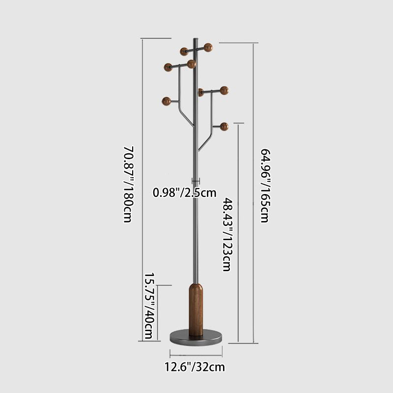 Modern Minimalist Spherical Tree-Shaped Cylindrical Solid Wood Rubberwood Stainless Steel Marble Hall Tree For Bedroom & Entryways