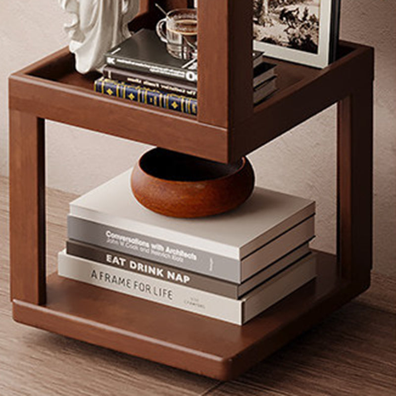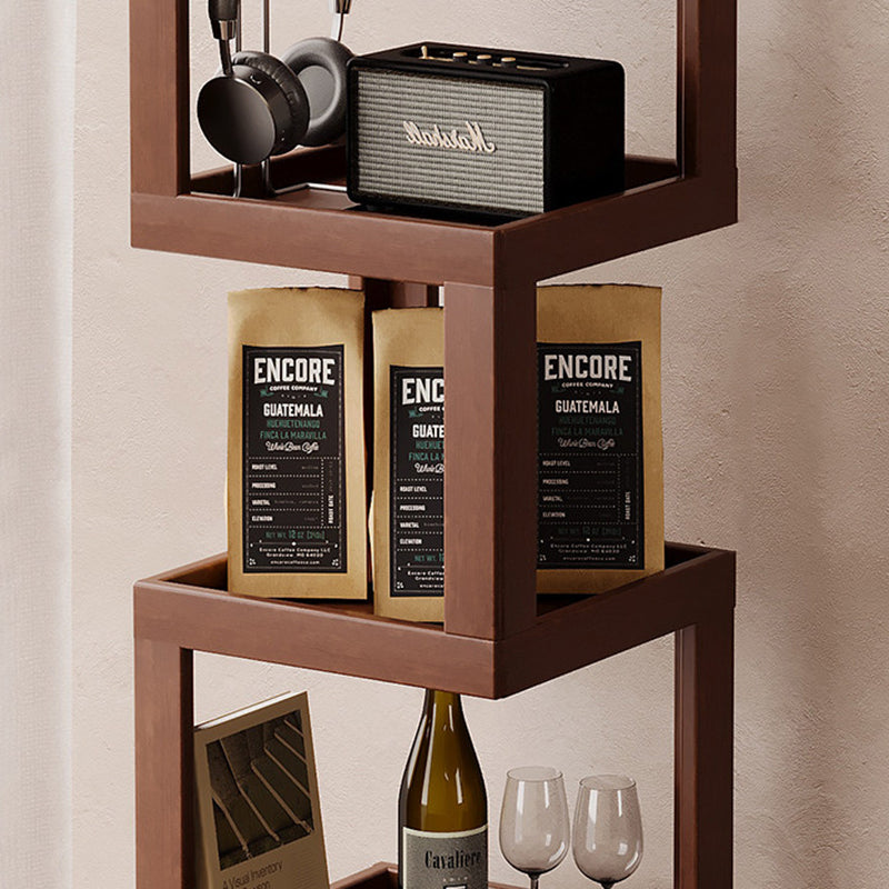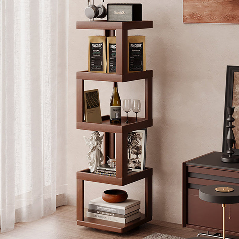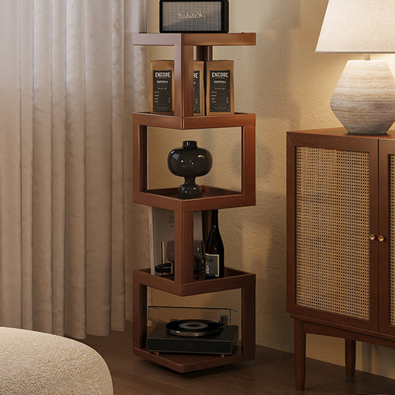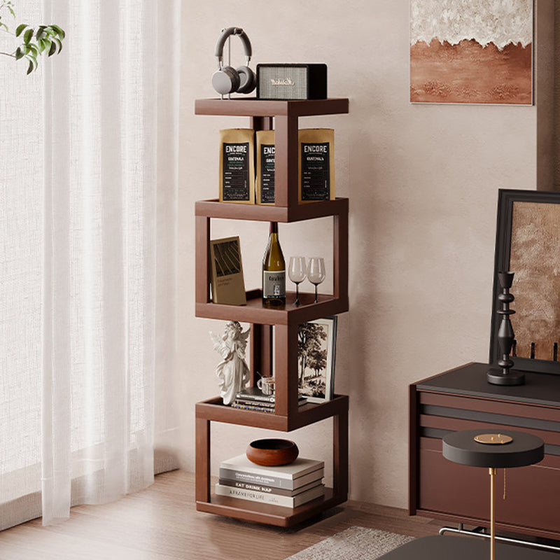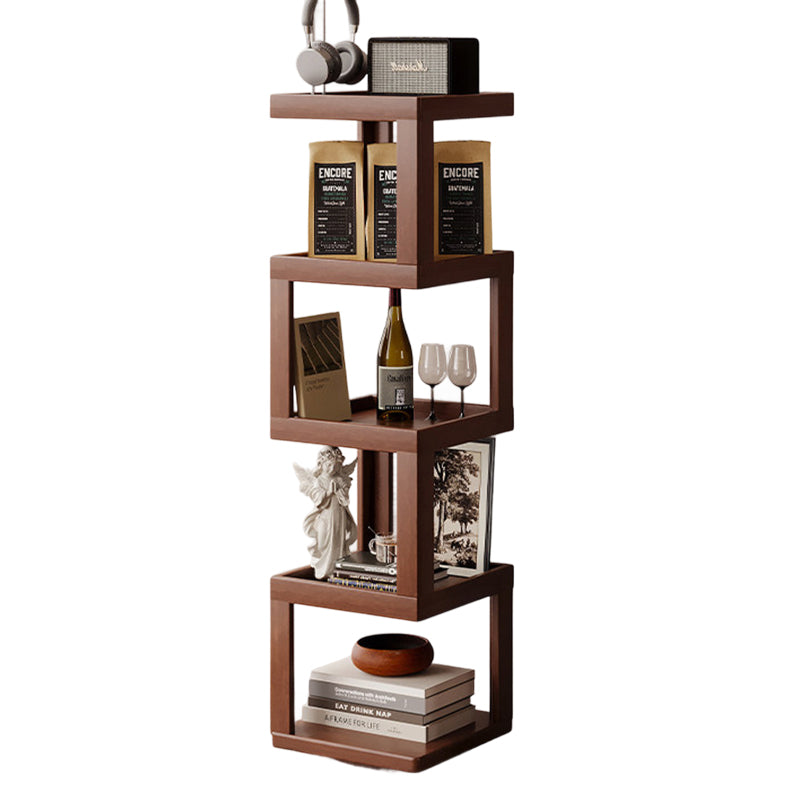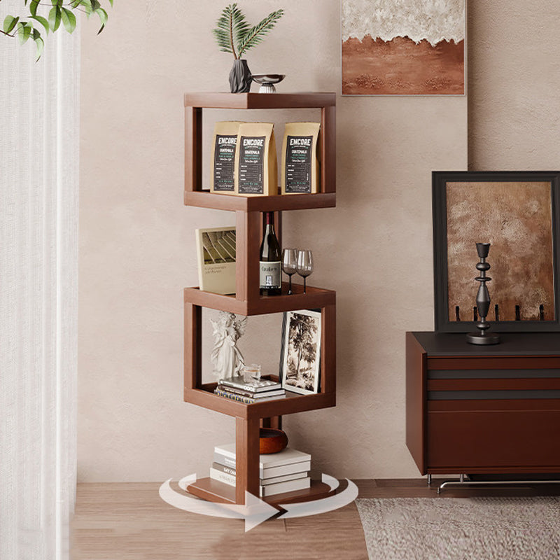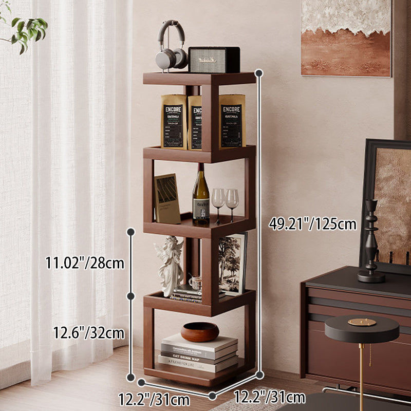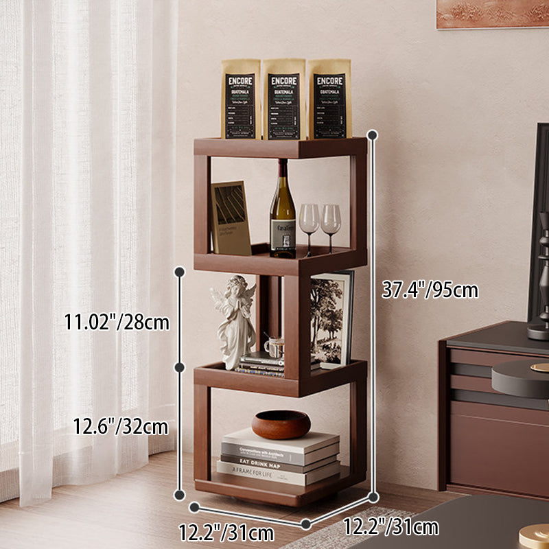Maximize your floor plan with this Scandinavian-inspired rotating storage shelf, featuring a clever 360-degree swivel structure for effortless access from any angle. Masterfully crafted from a sustainable blend of bamboo and engineered wood, its space-saving rectangular form is available in 3, 4, or 5-tier configurations. Dressed in a rich walnut tone, the unit provides robust load-bearing support and durable multi-level storage. With rounded safety edges throughout, it serves as a secure and stylish solution for child-friendly living room displays.