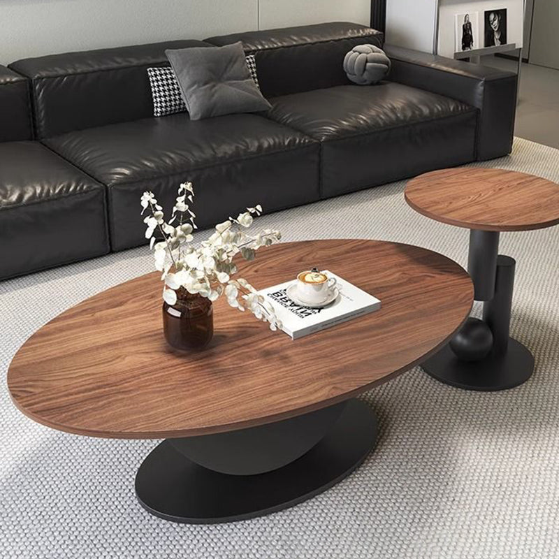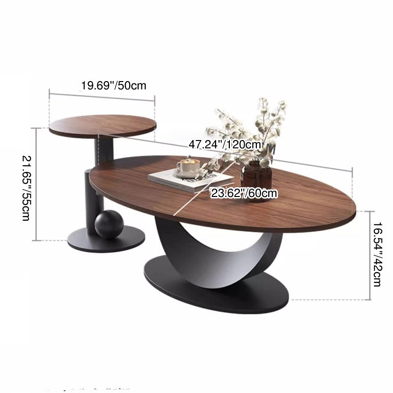Contemporary Scandinavian Engineered Wood Iron Oval Curved Coffee Table 1-Tier For Living Room