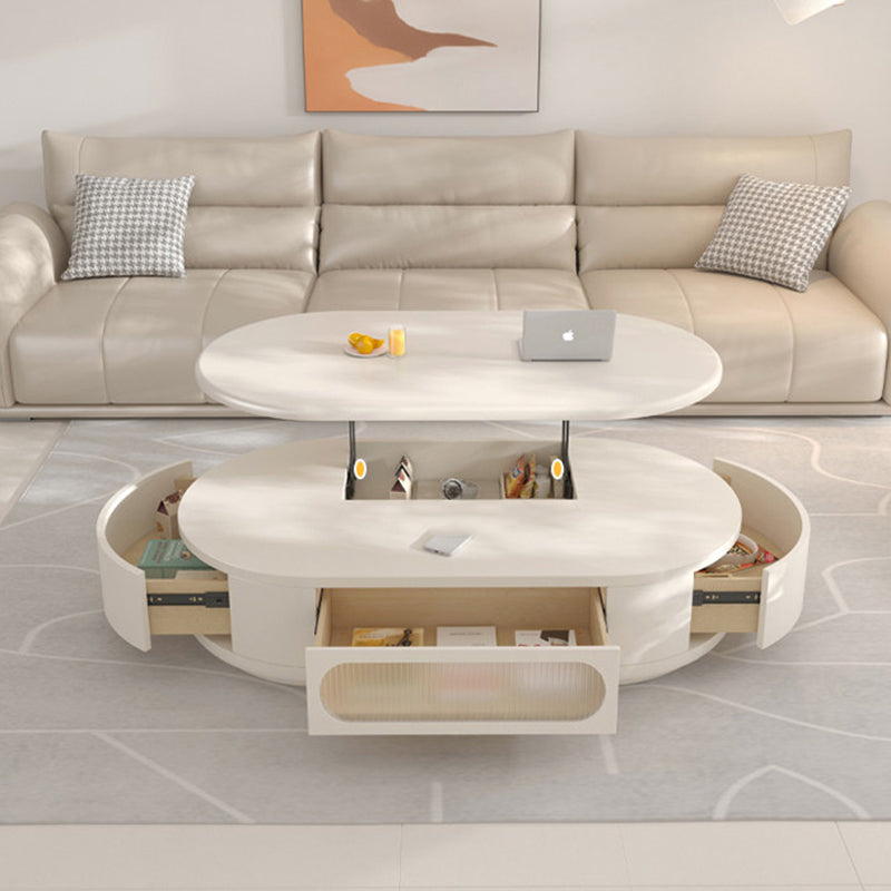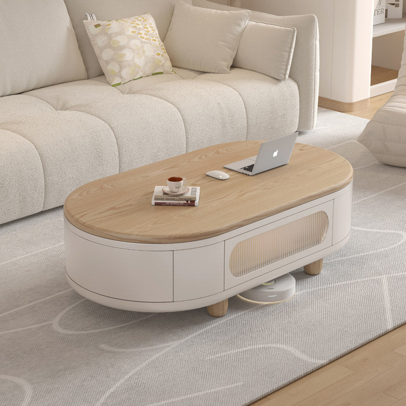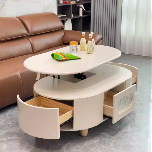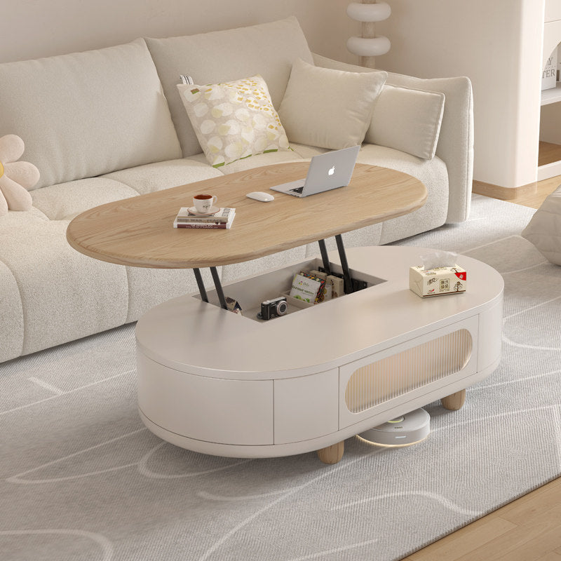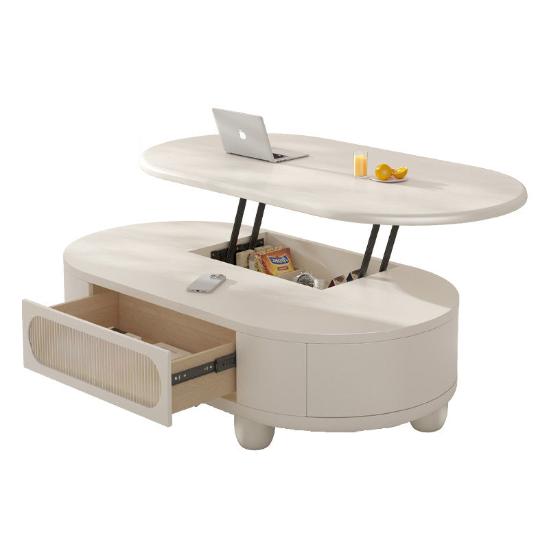 Experience the perfect marriage of "Nordic Cream" elegance and high-utility engineering with our Oval Lift-Top Coffee Table. Designed to meet the demands of modern North American living, this sculptural piece features a whisper-quiet pneumatic lift system that effortlessly elevates the tabletop to the perfect height for laptop work or casual dining. Finished in a sophisticated palette of Creamy White and Natural Oak, its soft, edge-free oval silhouette creates a harmonious flow in small apartments or "Organic Modern" living rooms, providing a high-end look that is as stylish as it is functional.