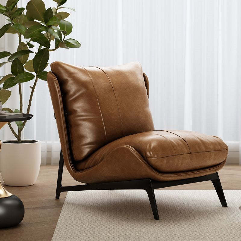 Experience refined comfort with this modern minimalist lounge chair. Upholstered in soft microfiber leather and supported by a sleek carbon steel frame, this piece combines sophisticated aesthetics with long-lasting durability.