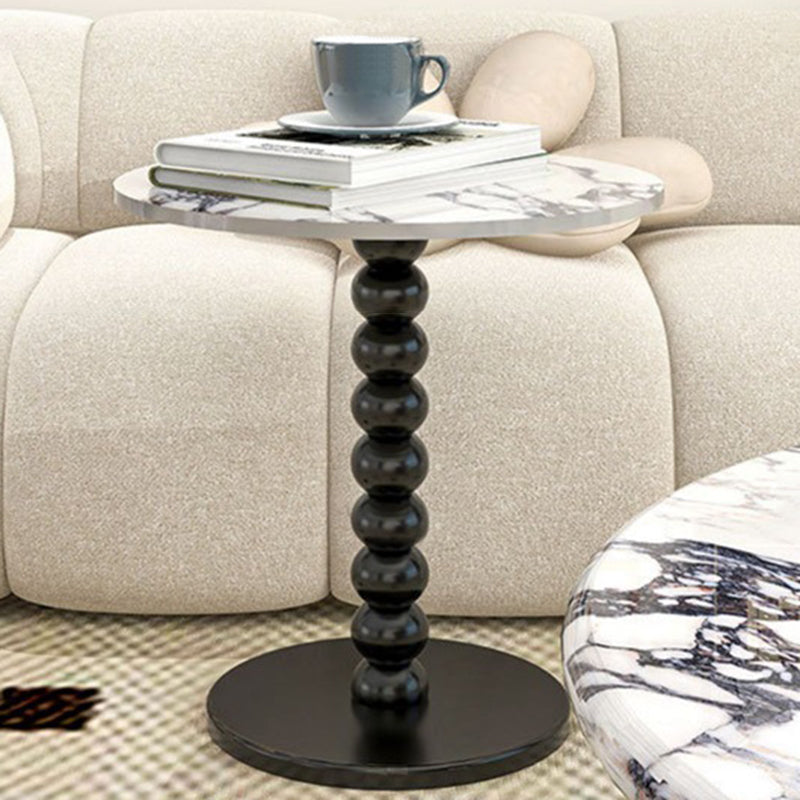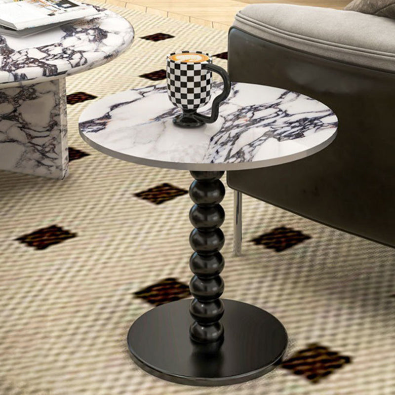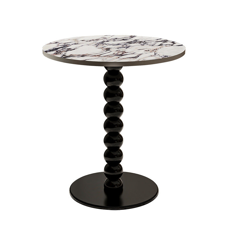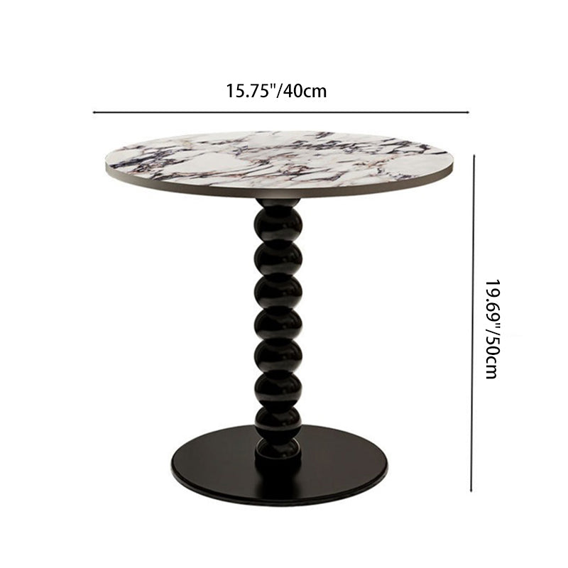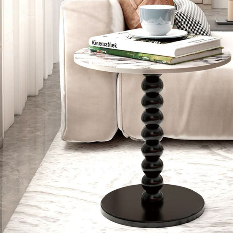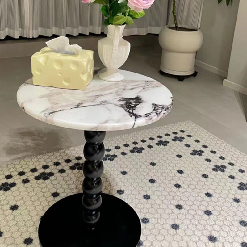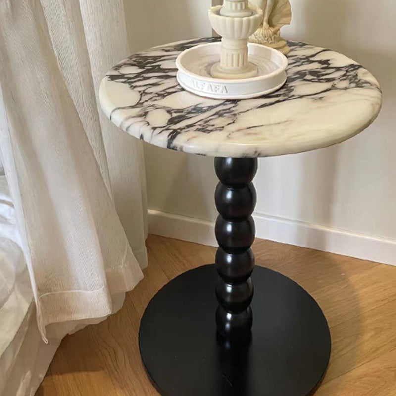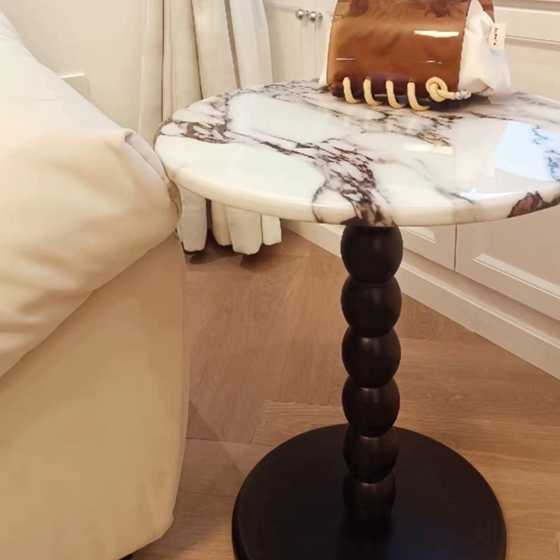 This Traditional French side table features a round marble and stone slab top with elegant beaded detailing, supported by rubber wood and Solid Wood Multi-Layer Board for strong load-bearing stability. Available in black and white, it offers smooth rounded edges, a waterproof and wear-resistant surface, making it ideal as a movable sofa or bedside accent table for modern living rooms.