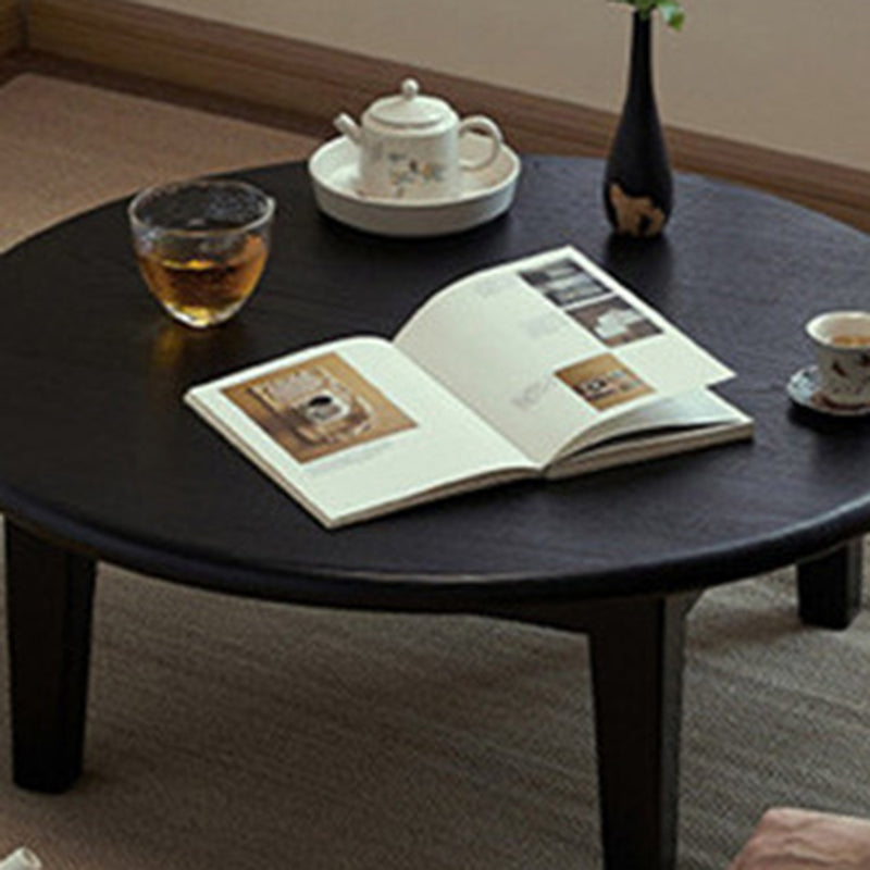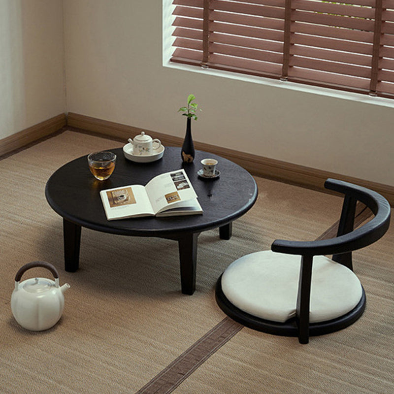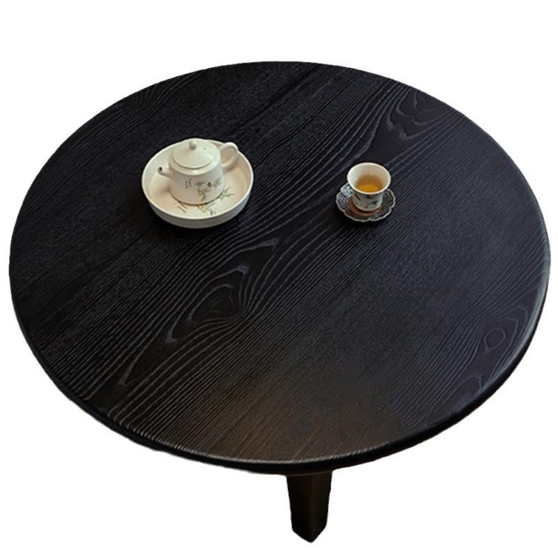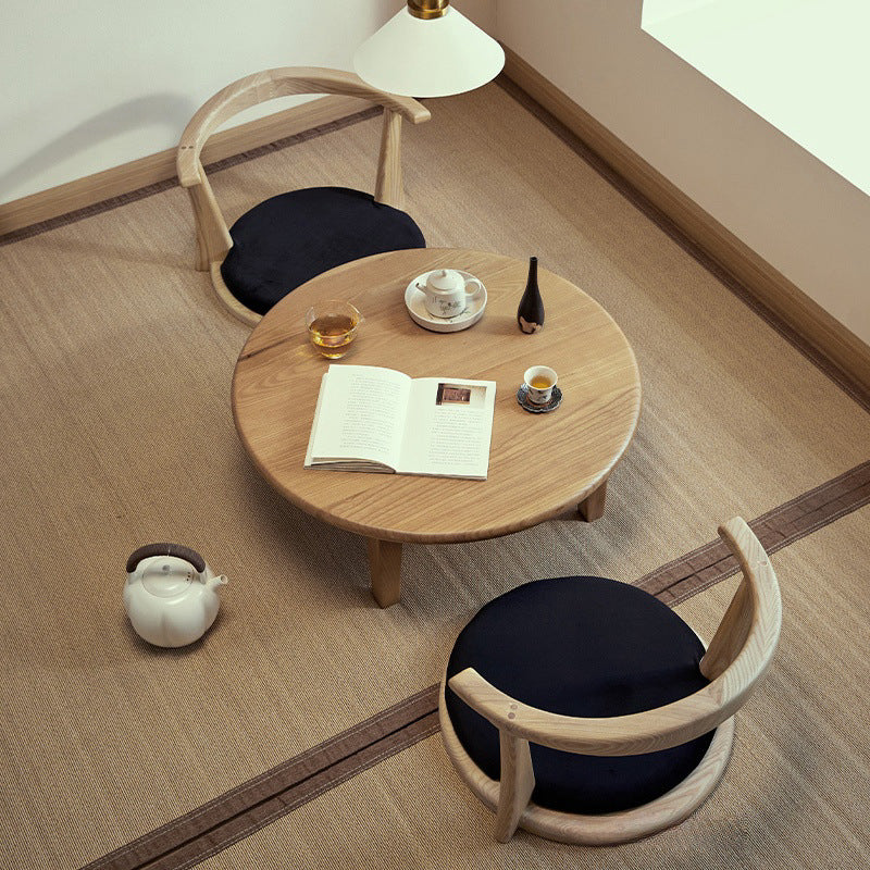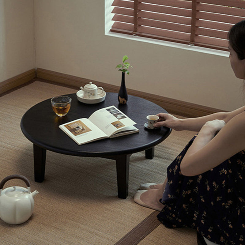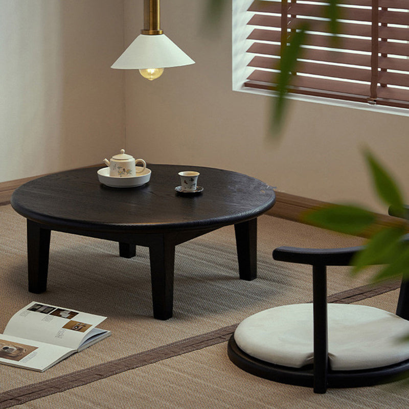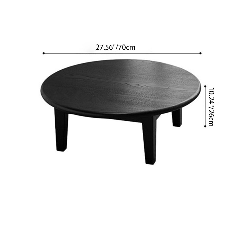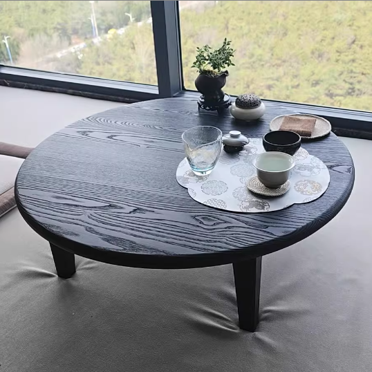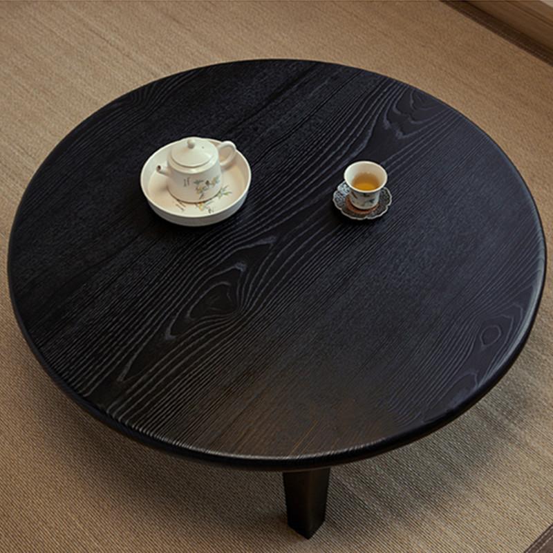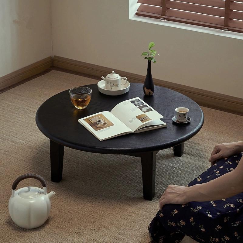This Traditional Japanese round coffee table is crafted from solid ash wood, featuring a 1-tier low-profile design ideal for living rooms, tatami spaces, and cozy guesthouses. Finished in natural wood or black, it showcases carbonized wood grain, smooth rounded edges, and a refined wabi-sabi aesthetic, blending warmth, durability, and minimalist elegance for modern interiors.