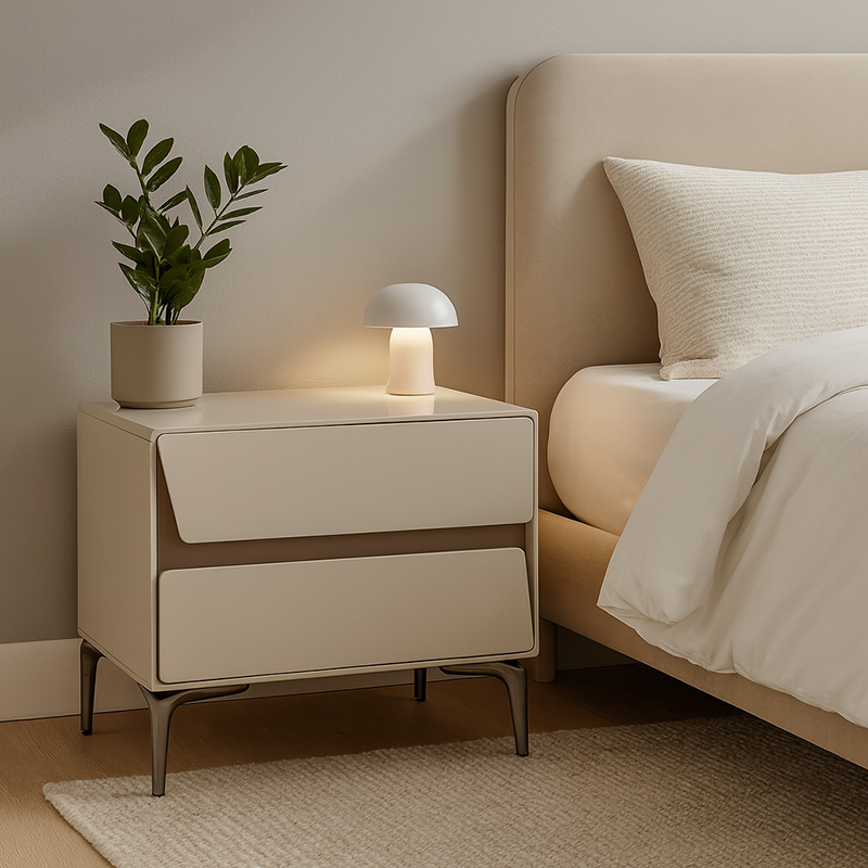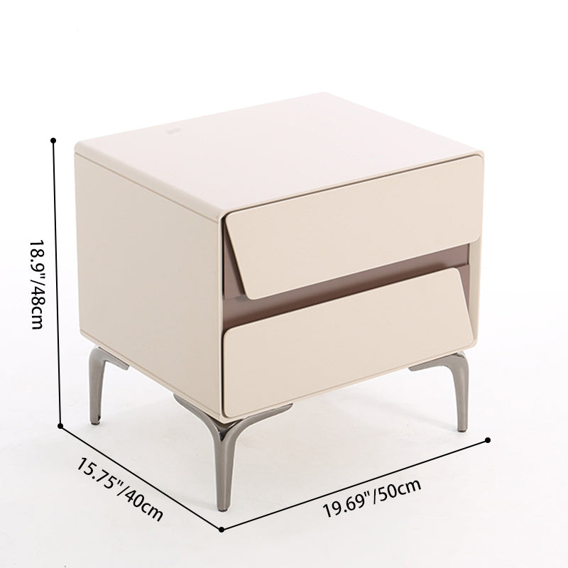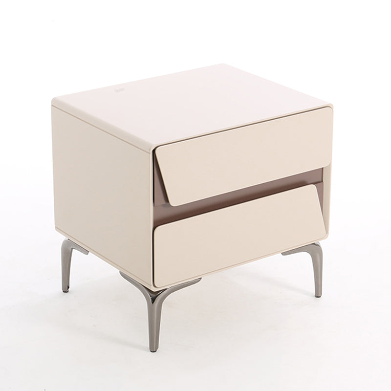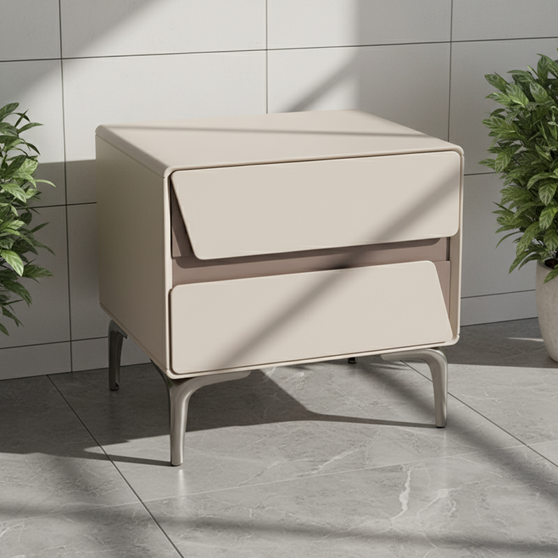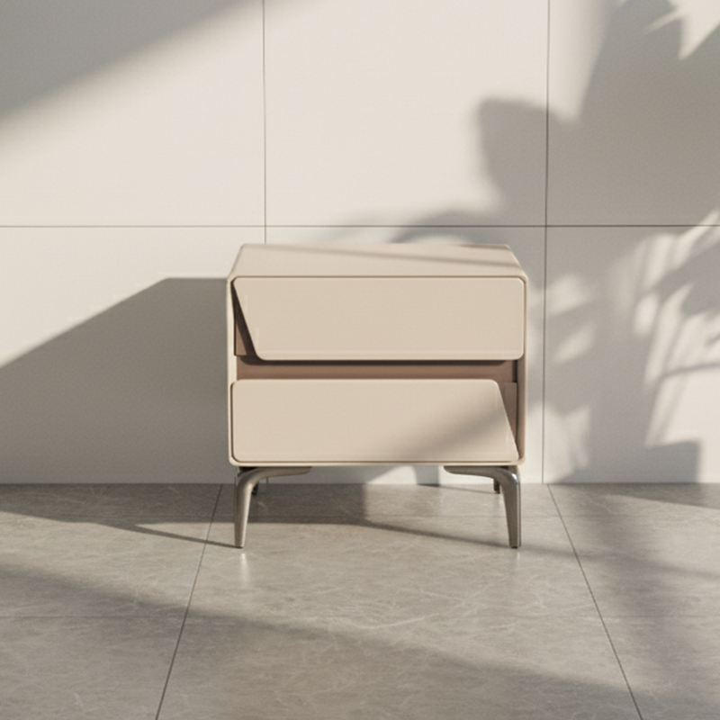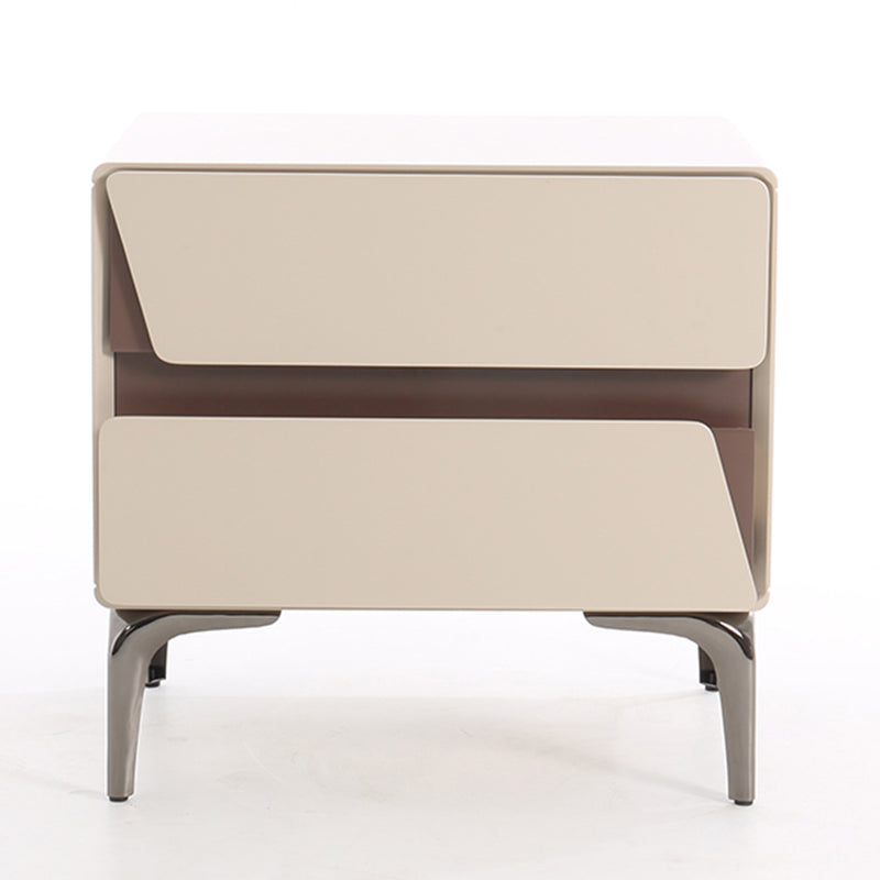 طاولة بجانب السرير بتصميم فاخر حديث بلون البيج مع درجين للتخزين - تصميم لوح ذو لونين هندسي لغرفة النوم