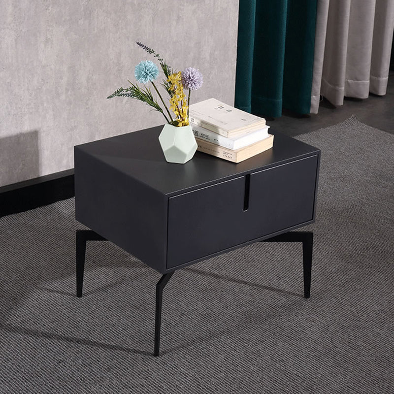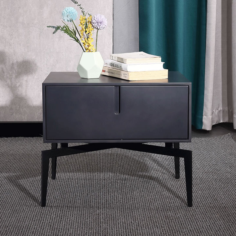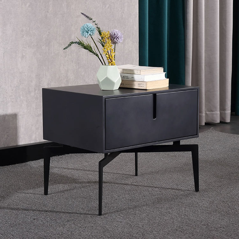 طاولة بجانب السرير بتصميم حديث وبسيط مربعة باللون الرمادي الداكن مع درج تخزين واحد لغرفة النوم