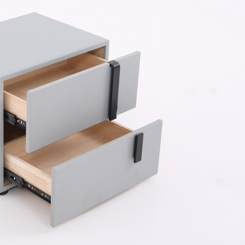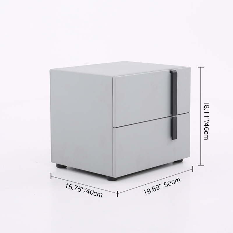 The soft touch of PVC leather meets the natural texture of solid wood drawers, making this nightstand a "therapeutic storage companion" for contemporary Nordic-style bedrooms. Crafted with E1-grade eco-friendly MDF, its heat-pressed wood fibers resist warping, aligning with Nordic home & health-focused ethos. The PVC leather surface is soft, eco-safe, and adds a warm texture to the space. The double-drawer design is thoughtful: solid wood drawers feature beautiful, uniform tones for natural-looking storage. Black frosted, rust-resistant hardware handles with an asymmetric design bring refined details to Nordic minimalism. Low-profile, high-strength plastic legs create a floating look, giving the rounded cabinet a lively vibe within clean lines.