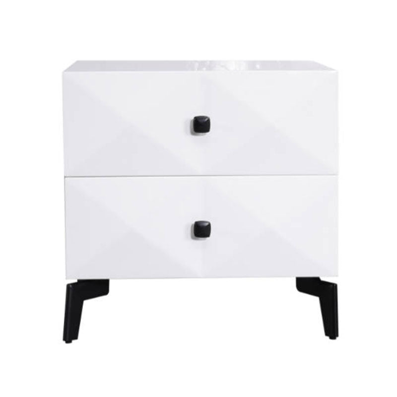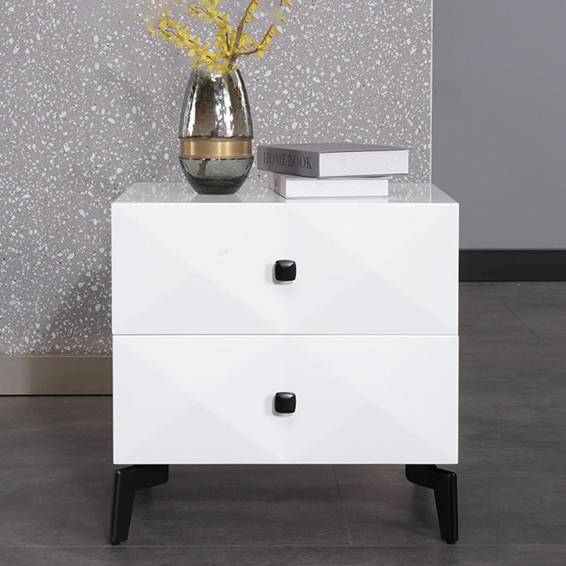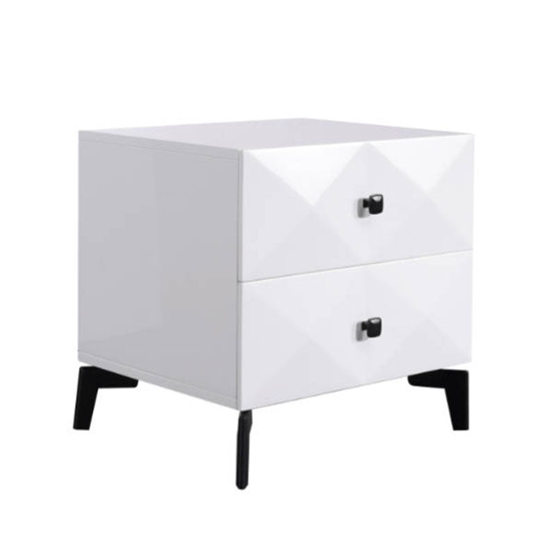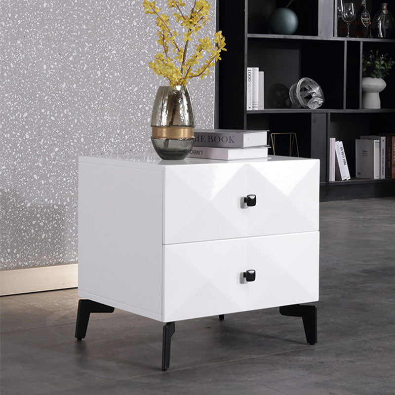 Modern Minimalist High-Gloss Veneer 2 Drawers Nightstand - Diamond Texture Bedside Table For Bedroom