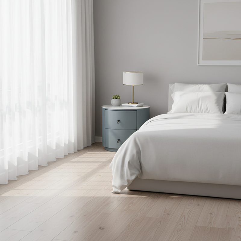 Nordic Serenity, Rounded Gray-Blue Weaves an Elegant Verse for Bedroom Storage!