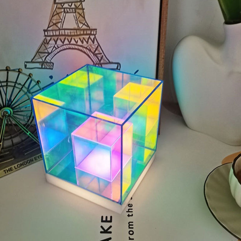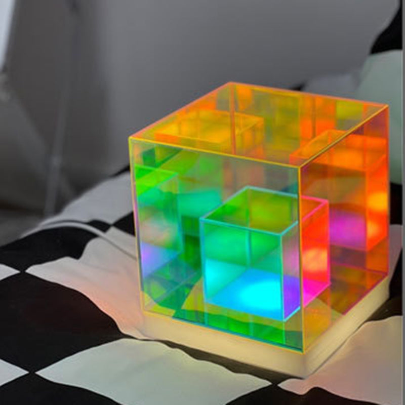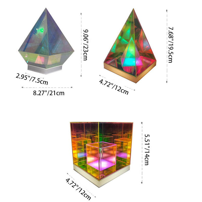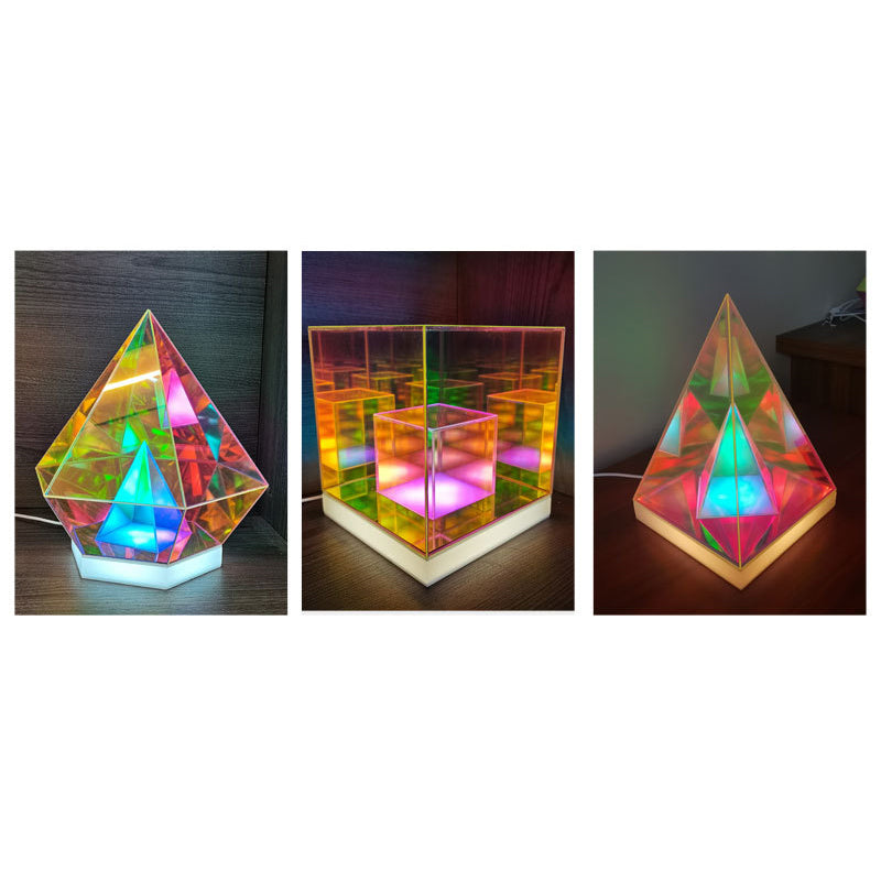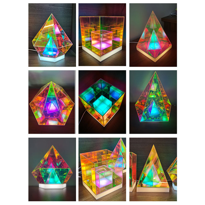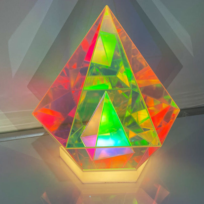 انشر جوًا إبداعيًا وعصريًا مع مصباح الطاولة الأكريليكي الرائع لدينا، الذي يتميز بتصميم الألماس والمكعب والهرم. مثالي كمصباح ليلي بجانب السرير، يوفر إضاءة متعددة الألوان وحيوية لتعزيز أجواء غرفة نومك.