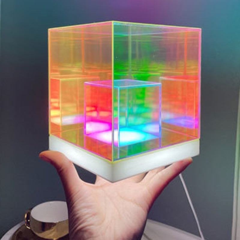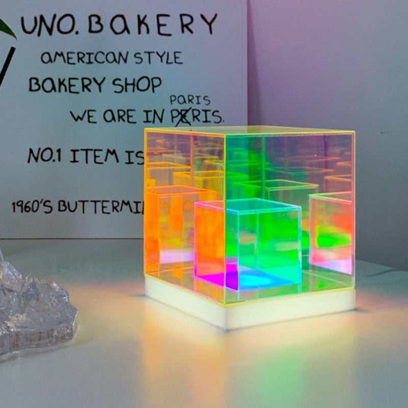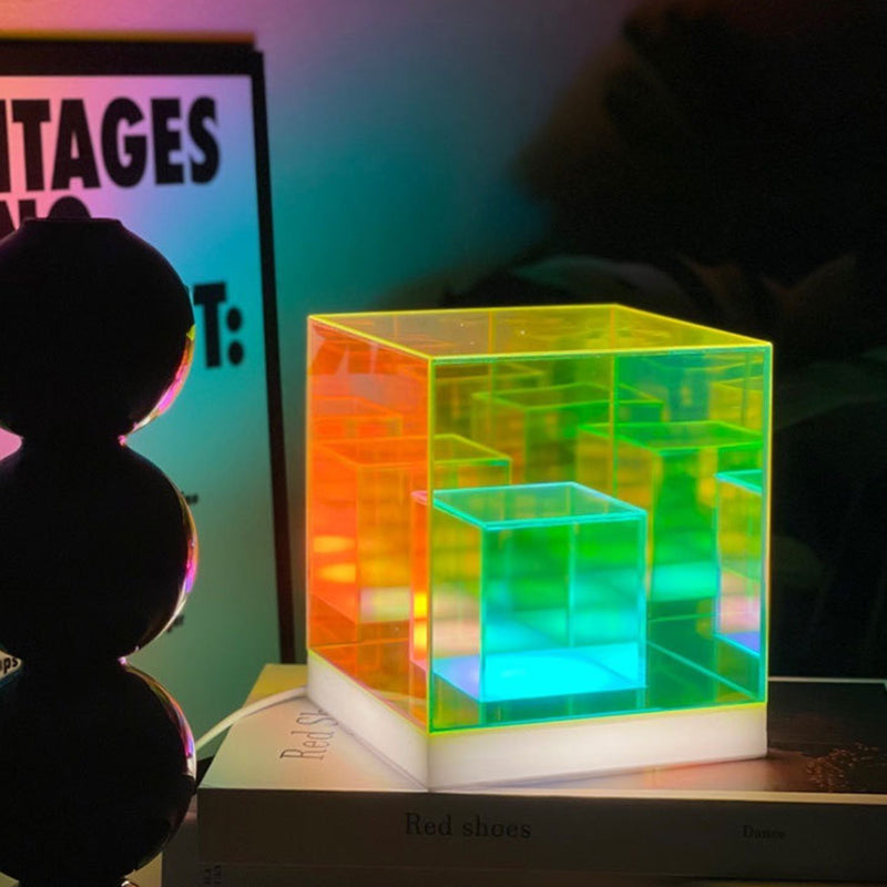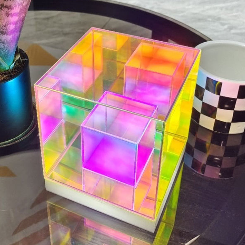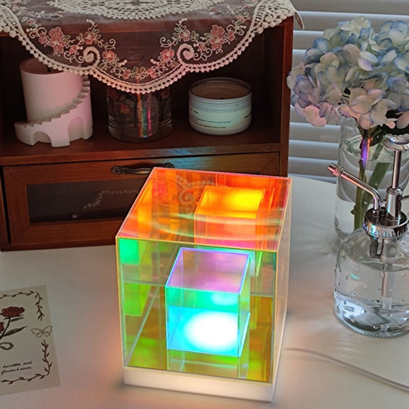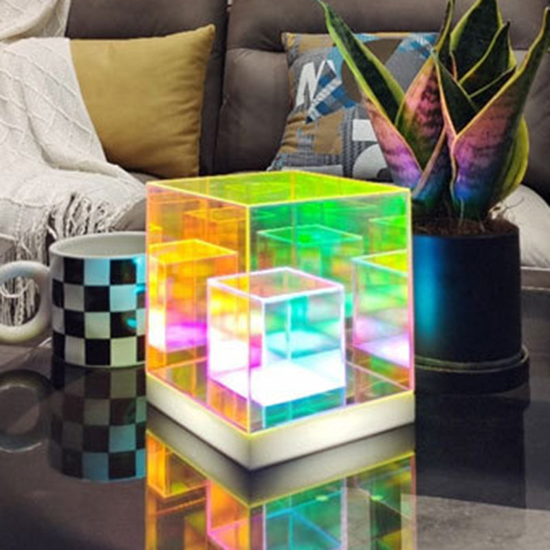انشر جوًا إبداعيًا وعصريًا مع مصباح الطاولة الأكريليكي الرائع لدينا، الذي يتميز بتصميم الألماس والمكعب والهرم. مثالي كمصباح ليلي بجانب السرير، يوفر إضاءة متعددة الألوان وحيوية لتعزيز أجواء غرفة نومك.