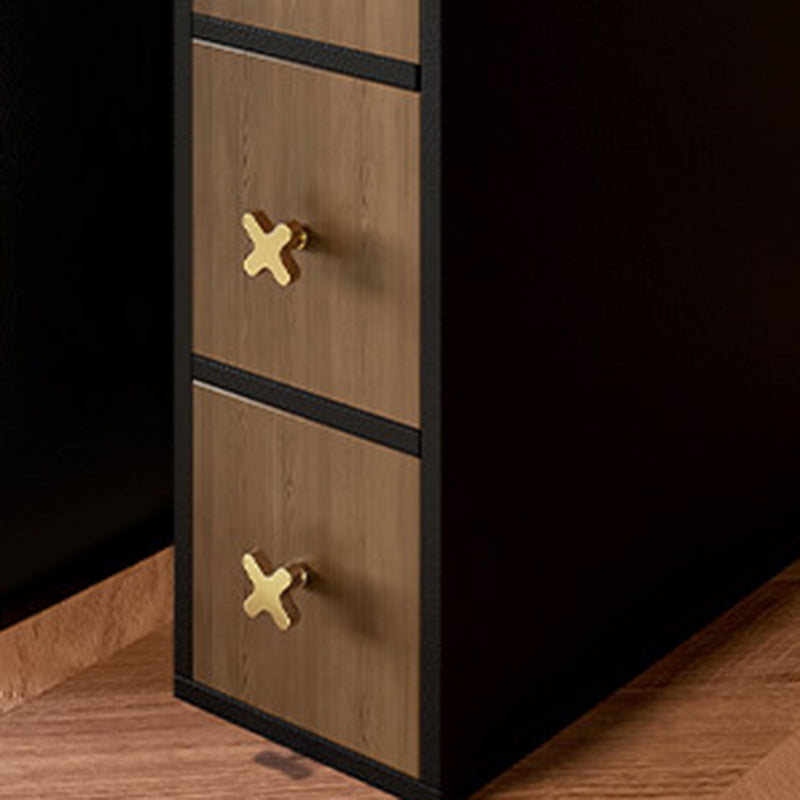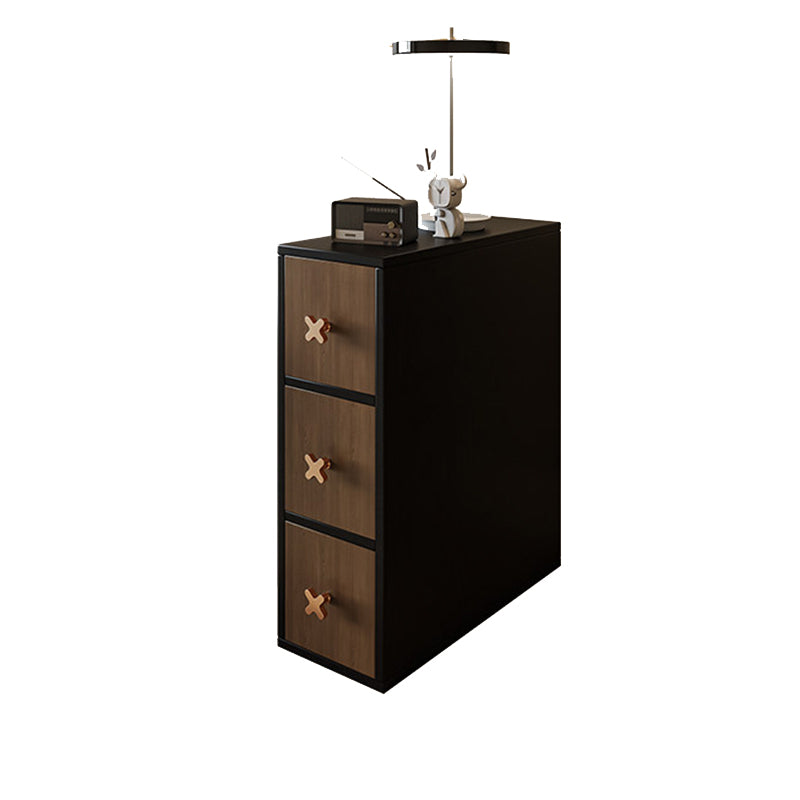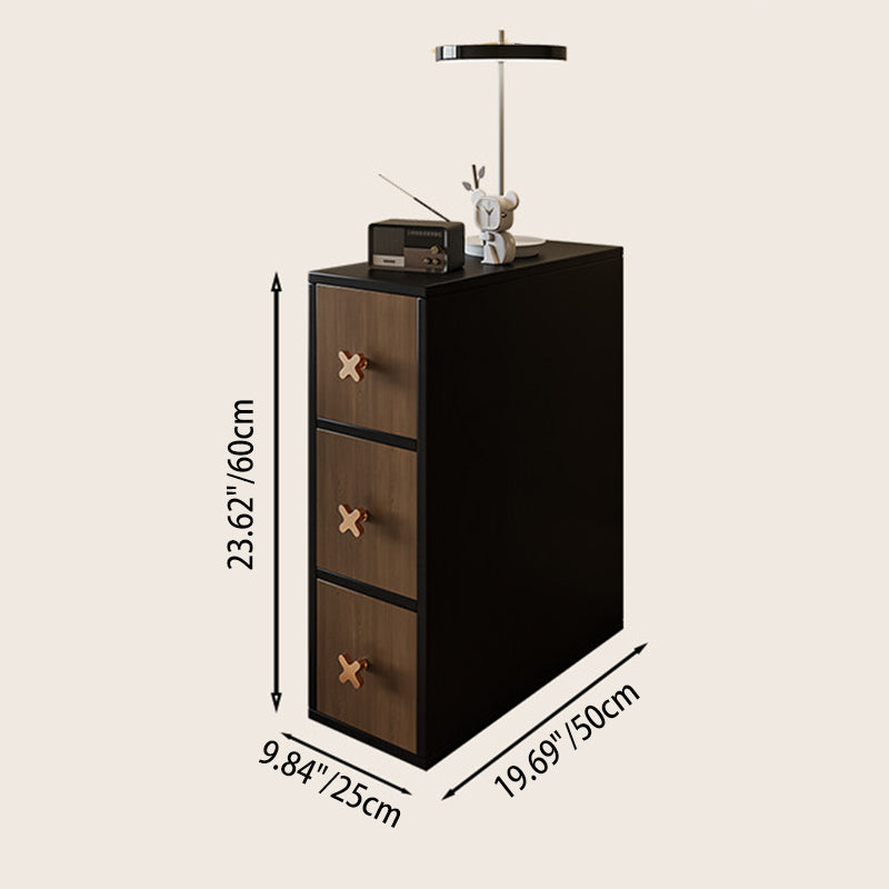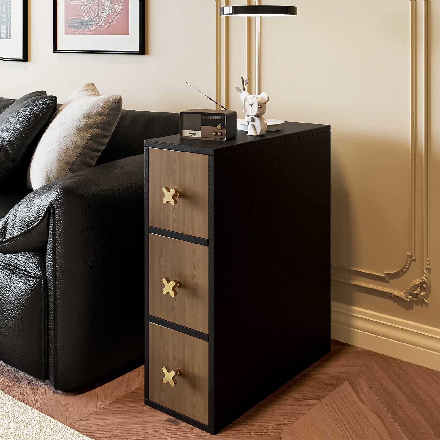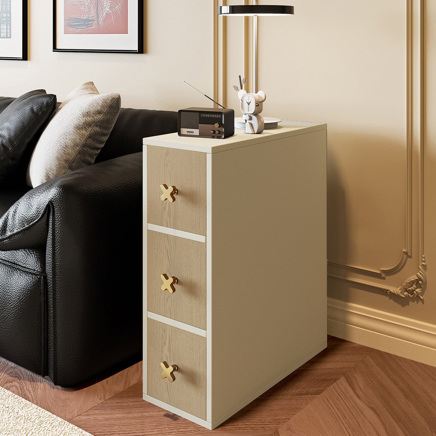 Maximize storage space with this contemporary vintage rectangular side cabinet, crafted from solid pine with microfiber leather accents. Its 3-drawer design ensures organized storage, while the slim and sturdy build fits narrow spaces in living rooms or bedrooms. Available in Light Walnut, Off-White, and Classic Wood tones, it balances durability and elegance.