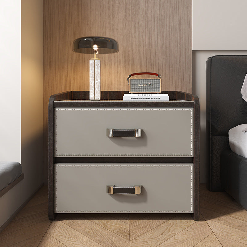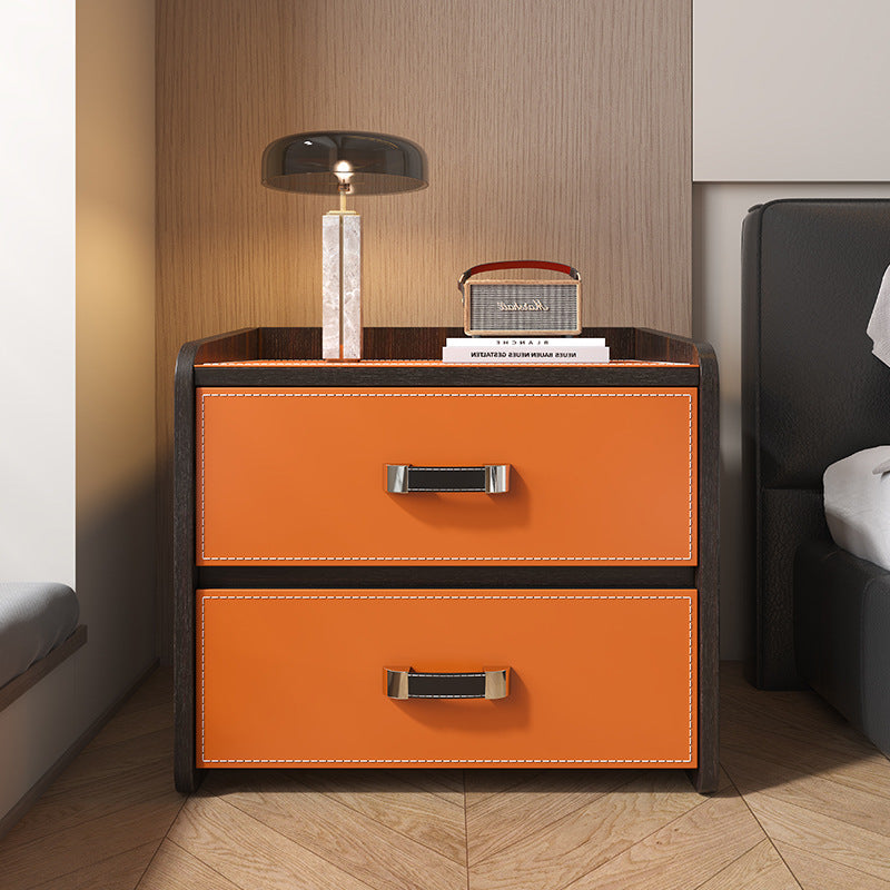 تتميز طاولة السرير الحديثة الفاخرة هذه بشكل مربع مصنوع من جلد السرج وألواح خشبية صلبة، مما يوفر مظهرًا راقيًا باللون الكاكي أو البرتقالي أو الرمادي الداكن أو الأبيض. مصممة بدرجين ناعمين يغلقان ذاتيًا، وسطح طاولة مسطح، وحافة مرتفعة واقية، توفر تخزينًا أنيقًا وعمليًا بجانب السرير لغرف النوم المعاصرة.