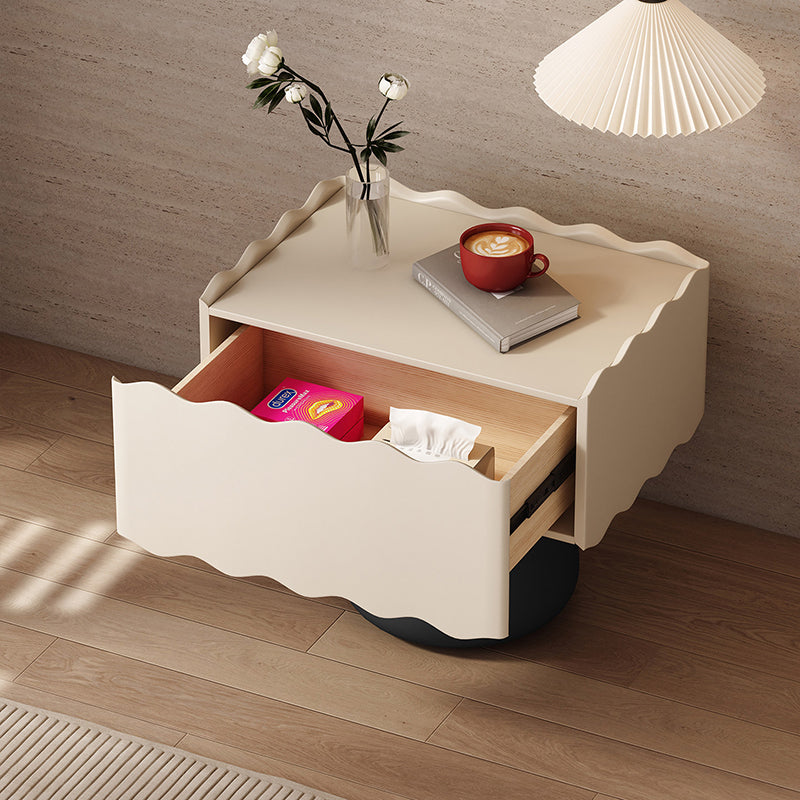 Elevate your bedroom with the airy elegance of this modern minimalist floating nightstand. Featuring a distinctive T-shaped design, this piece is meticulously crafted from a blend of solid wood and engineered wood to provide a stable, space-saving profile. It offers streamlined bedside storage through a combination of one drawer and an open shelf, keeping your essentials organized yet accessible. With rounded safety edges and strong load-bearing performance, it is as functional as it is beautiful. Available in a curated palette of beige, gray, black, green, and blush, it is the ideal choice for contemporary and French-inspired bedrooms.