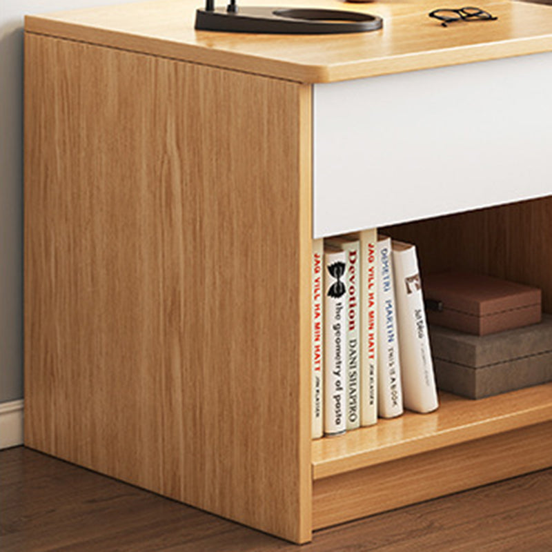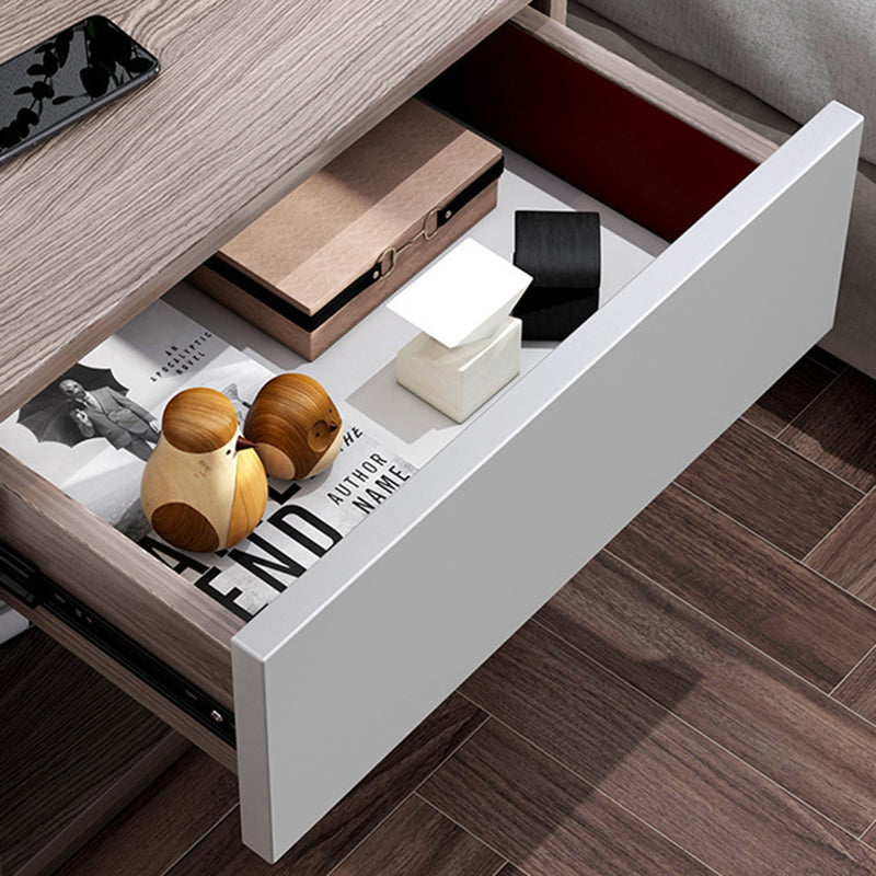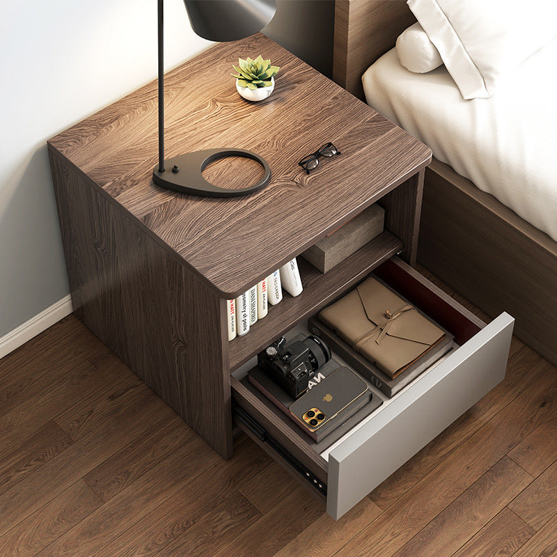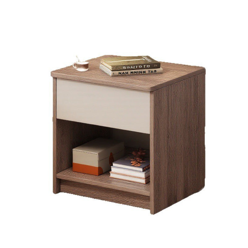 تتميز هذه القطعة بشكل مستطيل نظيف وتوفر تنظيمًا عمليًا بجانب السرير من خلال مجموعة من درج ينزلق بسلاسة وتصميم تخزين مفتوح من مستويين، مثالي للكتب والضروريات.