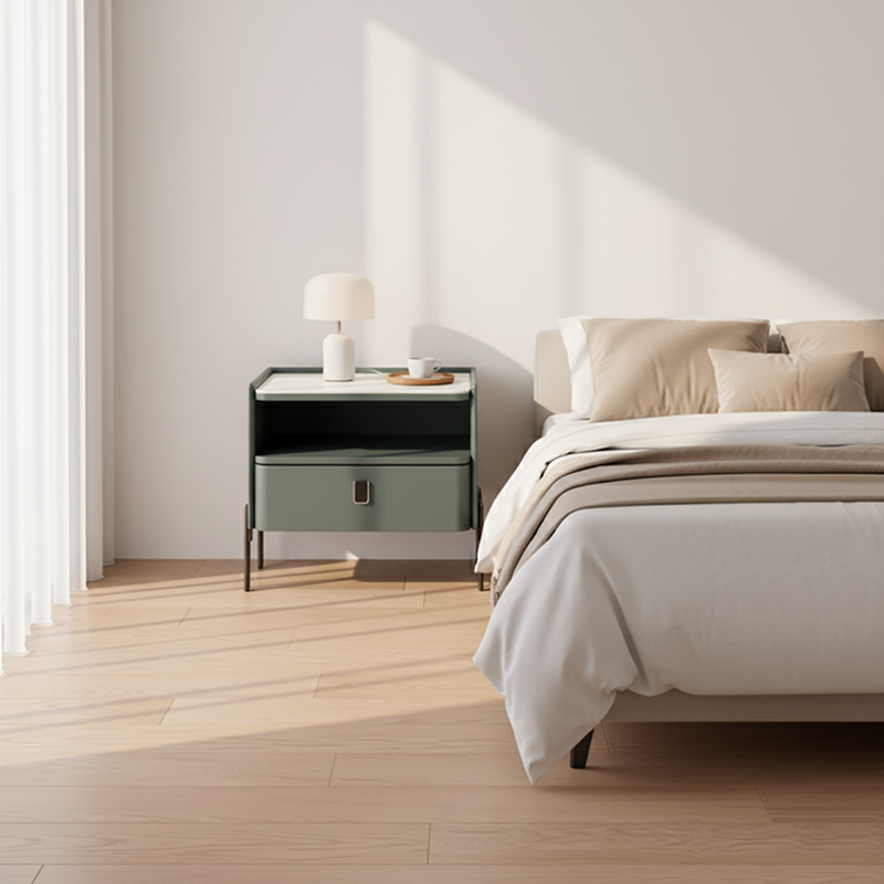 - Storage Design: Layered drawer + open shelf layout; store private items in the drawer and daily goods on the shelf for more efficient access.