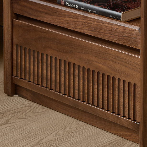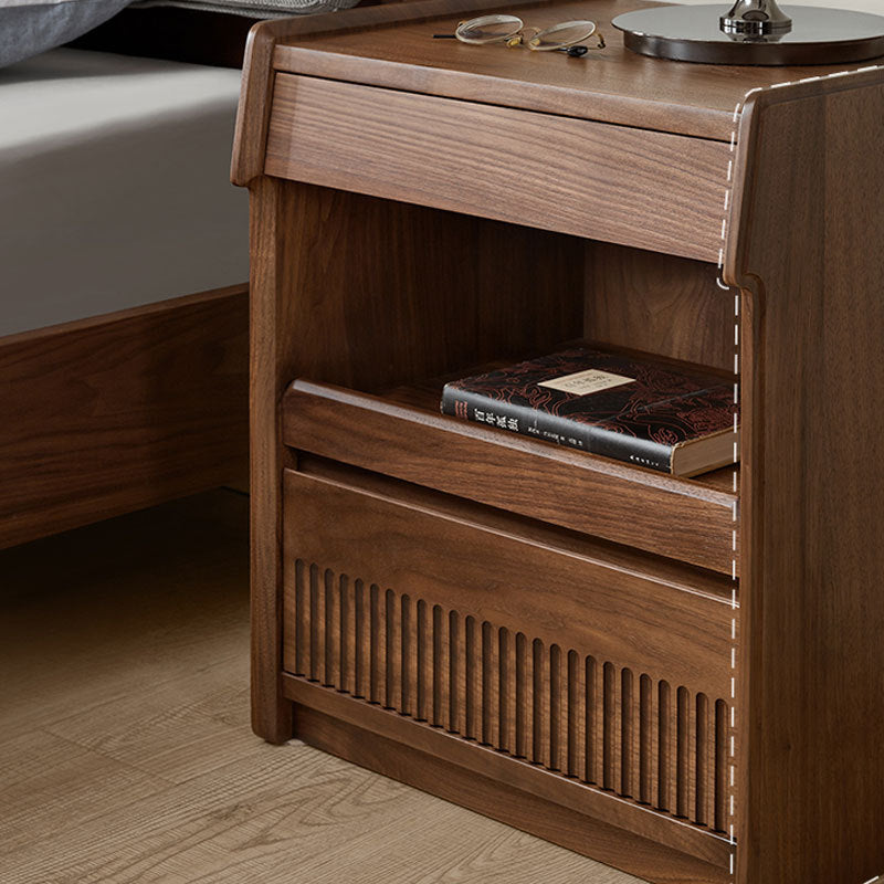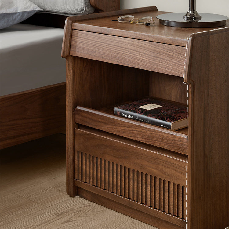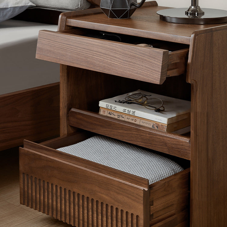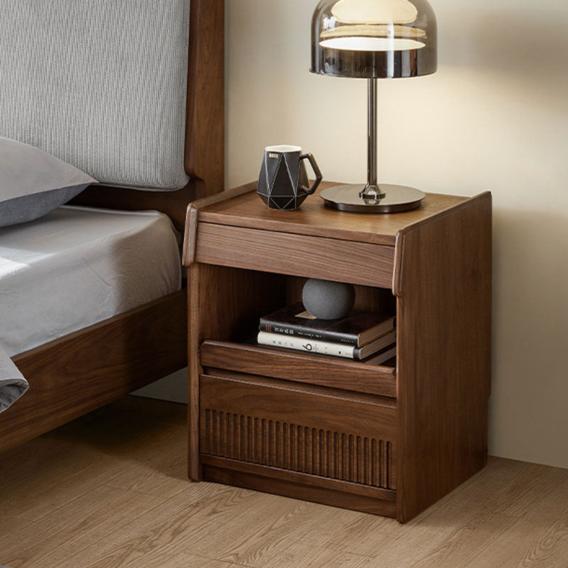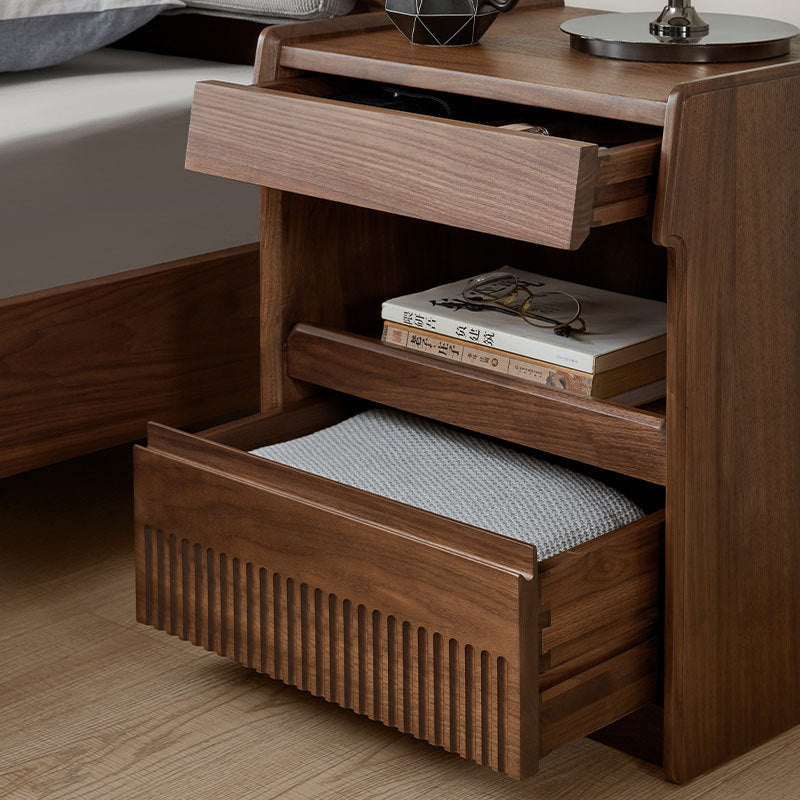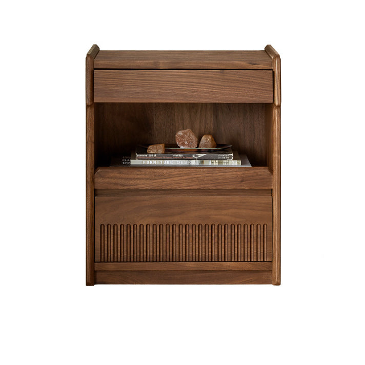 مصنوع من خشب الجوز الأسود الغني، يتميز هذا المنضدة الليلية المستطيلة بتشطيب طبيعي للحبوب، وأدراج مزدوجة بمقابض مخفية، وتصميم بحافة مرتفعة لمنع سقوط العناصر. إنه إضافة تقليدية مثالية لغرف النوم التي تسعى إلى الوظيفة والسحر الخالد.