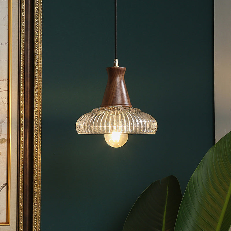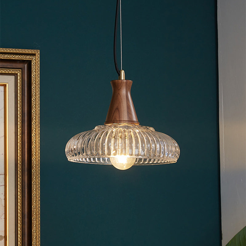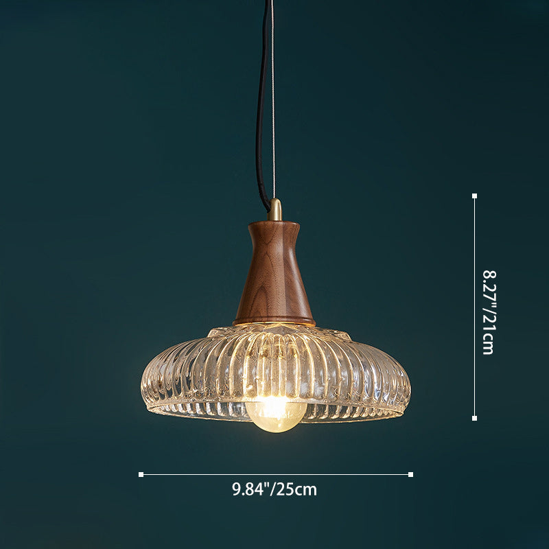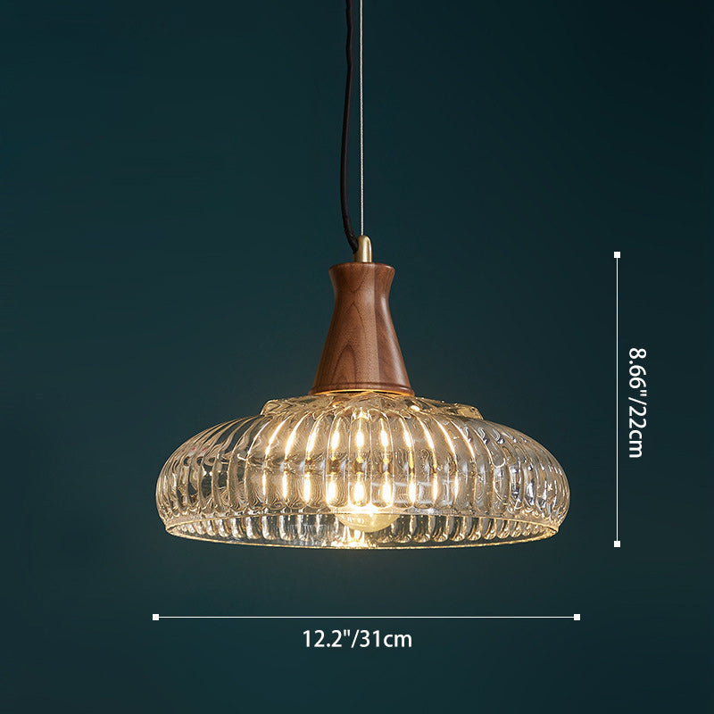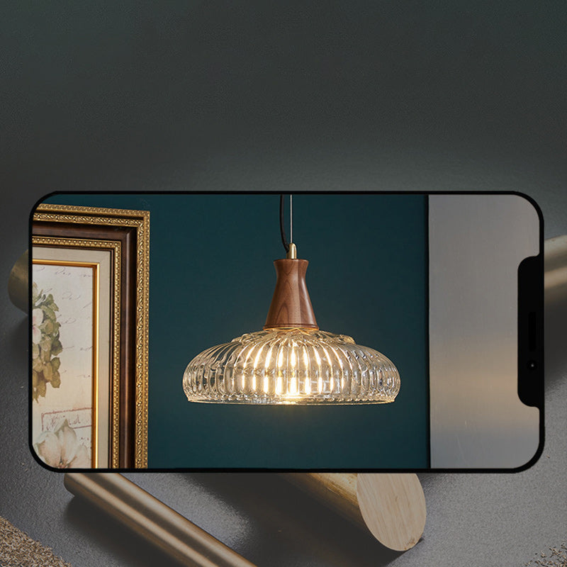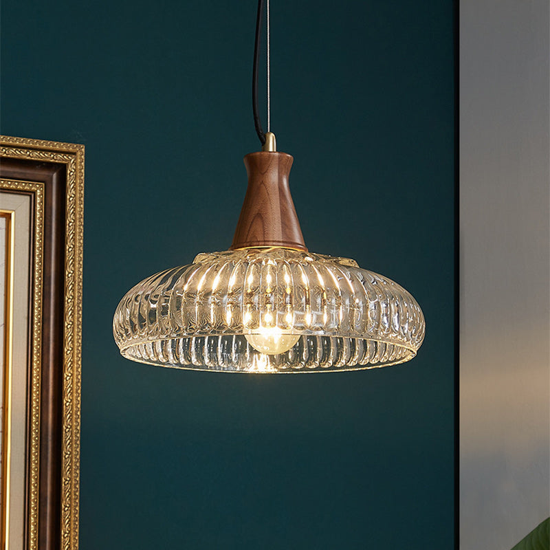 يتميز هذا الضوء المعلق بسلك تعليق قابل للتعديل، وخشب الجوز الطبيعي، ومواد نحاسية مقاومة للصدأ. غطاؤه المستدير المخطط يضفي لمسة مميزة على أجواء غرفة النوم.