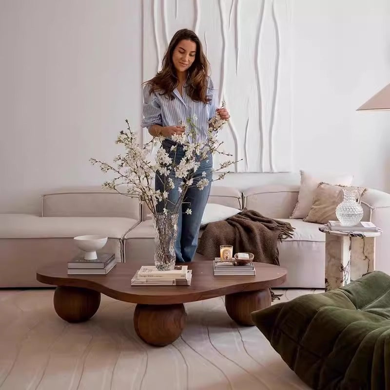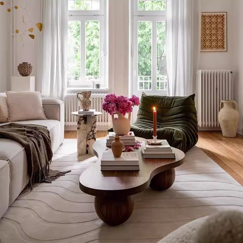 تم تصميم هذه الطاولة الإبداعية للشاي للعيش العملي، وتتميز برف تخزين مفتوح تحت السطح العلوي، مثالي للحفاظ على الكتب وأجهزة التحكم عن بعد والمجلات منظمة بدقة. حجمها الصغير وشكلها الفني يجعلها الحل الأمثل لتعظيم الأناقة والوظيفة في الشقق الصغيرة والمعيشة في الشقق الحديثة. مصممة خصيصًا للعملاء في أمريكا الشمالية الذين يبحثون عن طاولات قهوة على شكل سحابة، أثاث منتصف القرن بلون الجوز، وطاولات تخزين للمساحات الصغيرة ذات جاذبية تصميم فريدة.