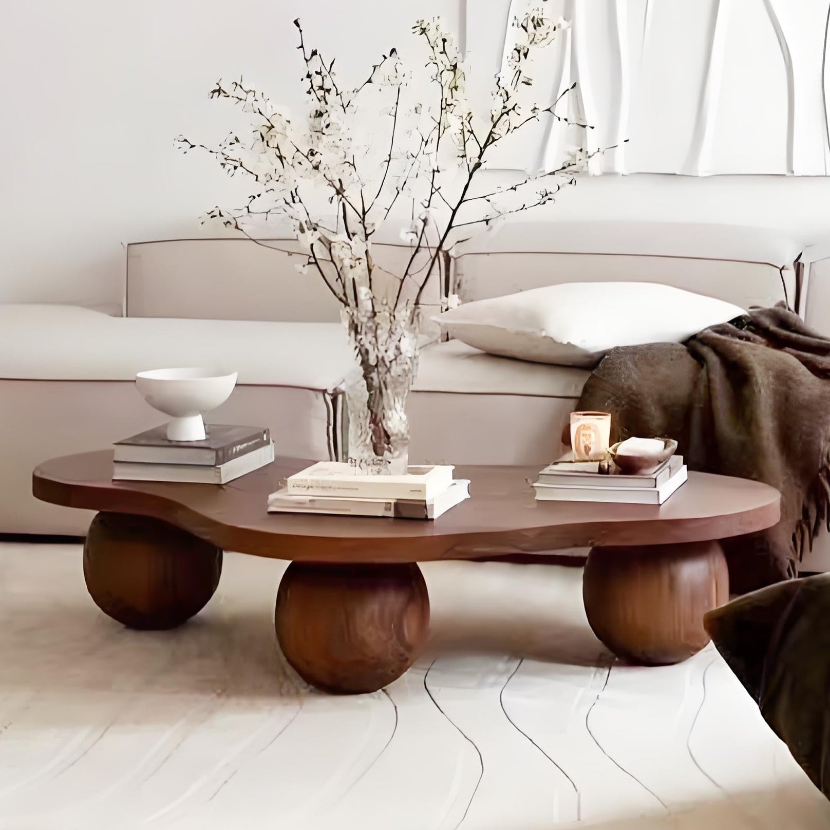 أضف لمسة من الأناقة والدفء إلى غرفة المعيشة الصغيرة الخاصة بك باستخدام طاولة قهوة مستوحاة من الطراز النورديك القديم. تصميمها المميز على شكل سحابة يخلق على الفور نقطة محورية ناعمة وفنية. مصنوعة بجودة دائمة، تتميز بسطح من خشب الصنوبر الصلب مع لمسة نهائية غنية بلون الجوز، متناقضة بشكل مثالي مع قاعدة من الفولاذ الكربوني. يزداد جاذبية الطاولة الجمالية بفضل الحواف المستديرة الناعمة والأقدام الكروية الفريدة والمستقرة.