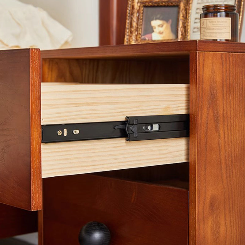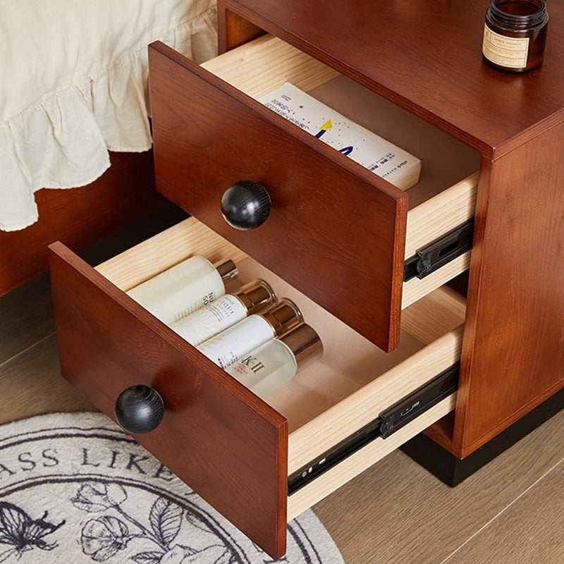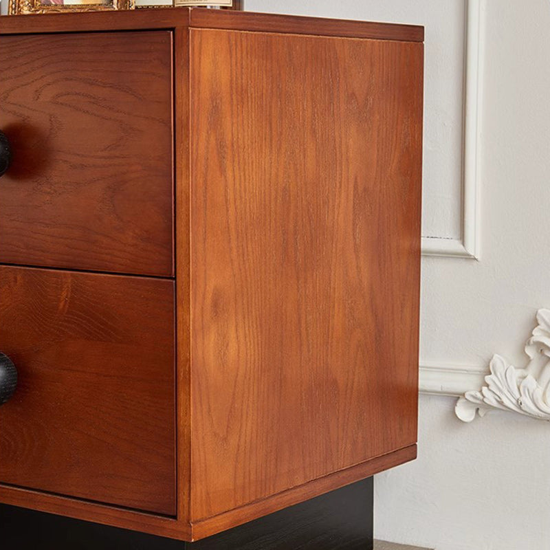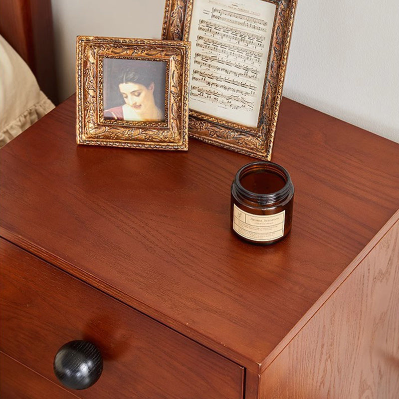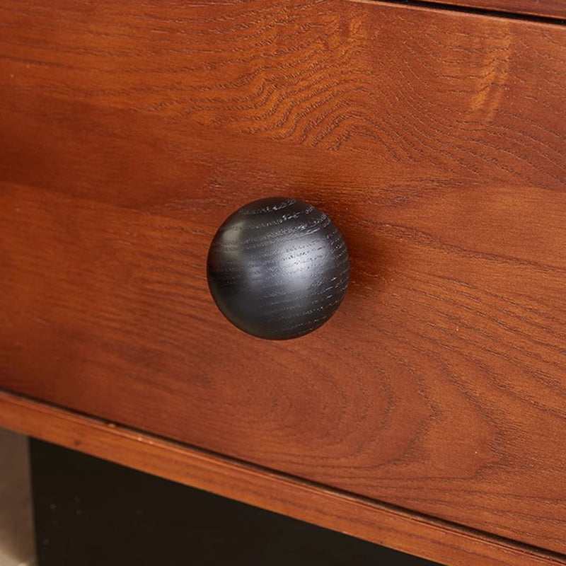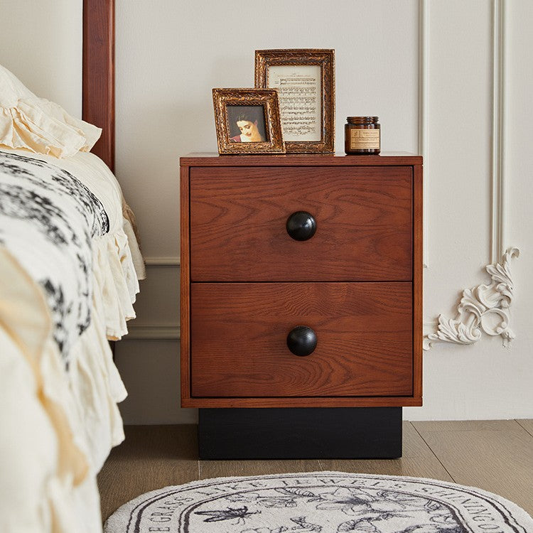 مصنوع من الخشب الصلب والمعدن، يتميز هذا الكومودينو ذو الطراز العتيق بوجود درجين ونظام انزلاق هادئ وتصميم ثابت قائم على الأرض. متوفر باللونين البني والأسود، تضفي أرجله الكروية الأنيقة وشكله المستطيل سحرًا كلاسيكيًا على أي غرفة نوم.