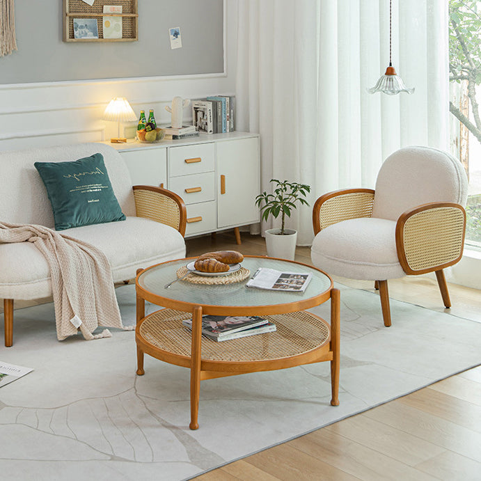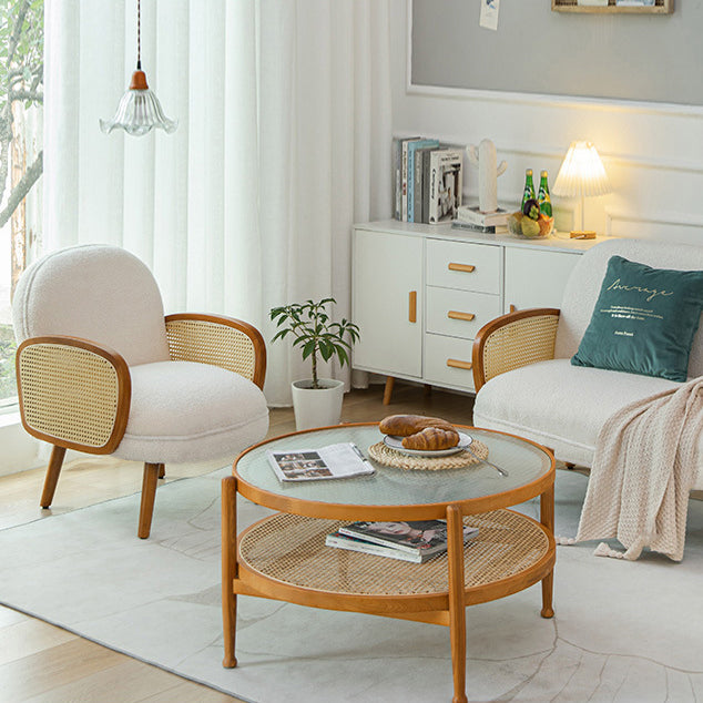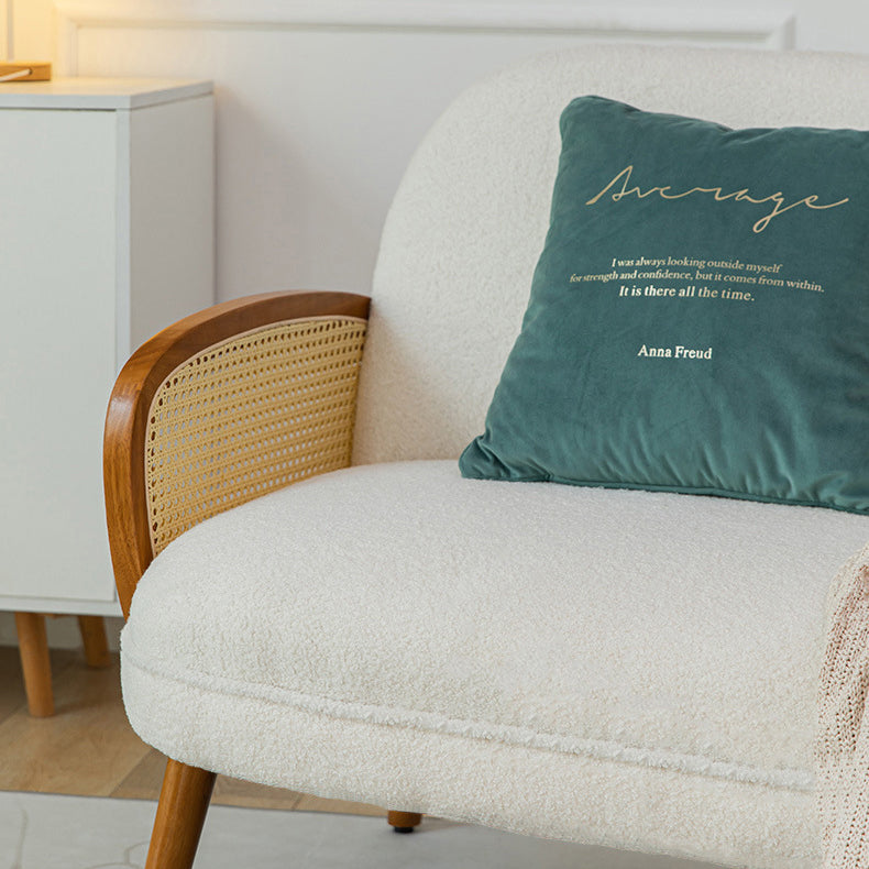 Modern Minimalist Curved Corduroy Solid Wood Plastic Rubberwood Sponge Plastic Weaving Accent Chair Backrest Armrest For Living Room