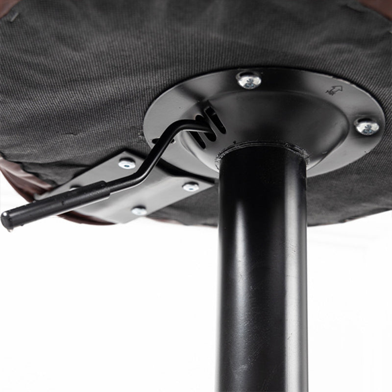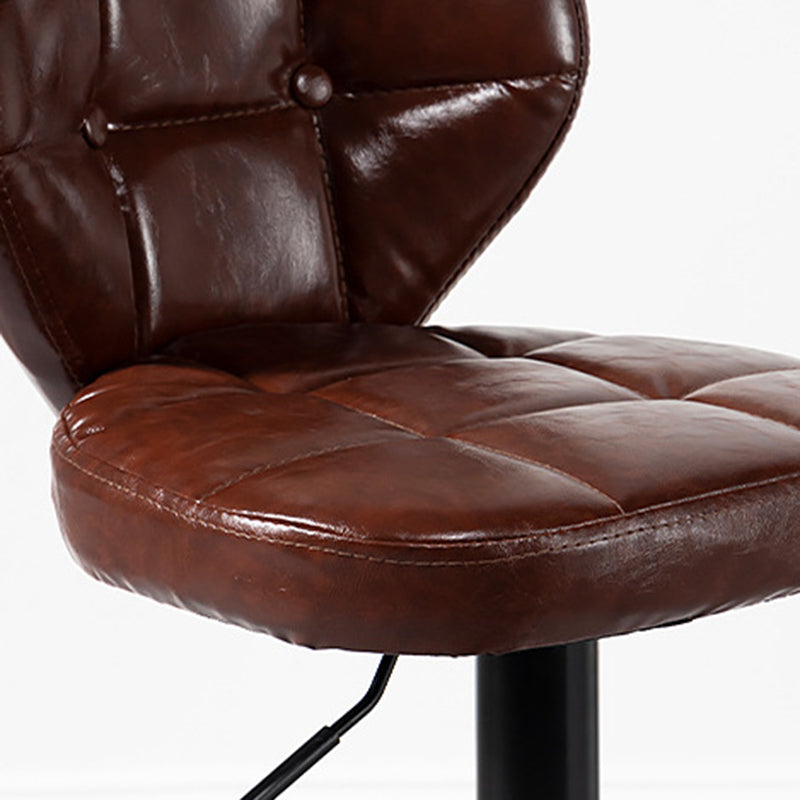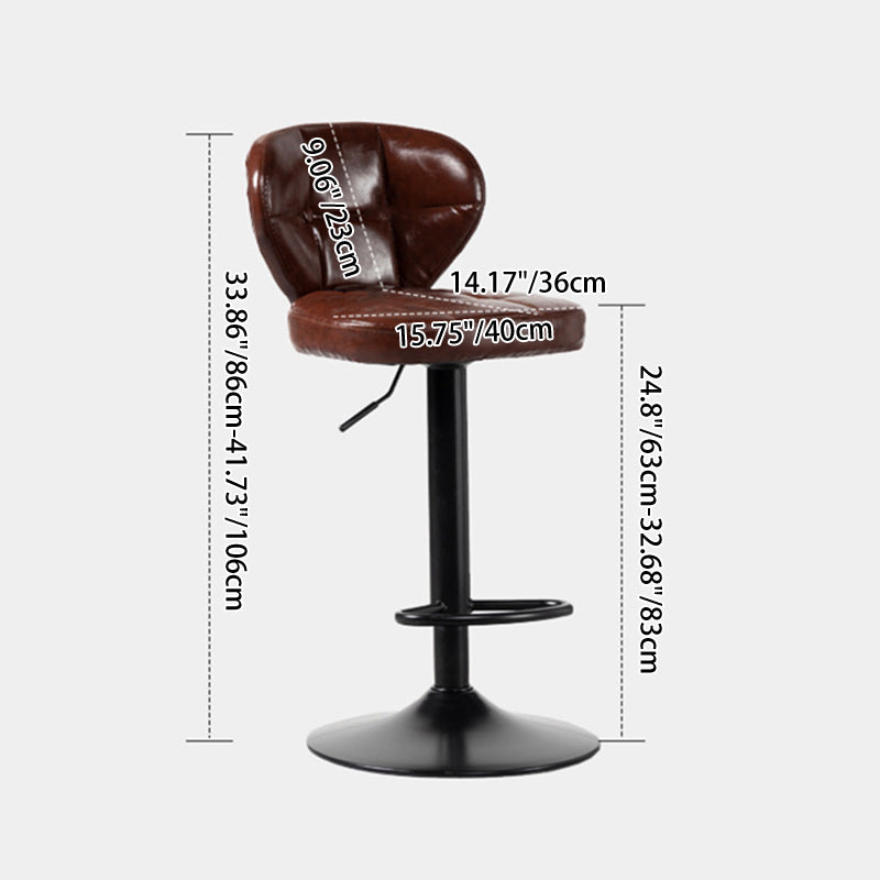 Contemporary Luxury Curved Cylindrical Adjustable Height Faux Oil Wax Leather Metal Bar Stool Backrest Armless For Dining Room & Kitchen