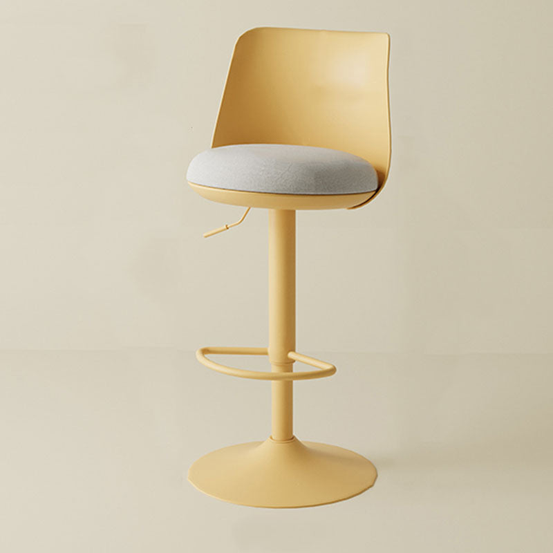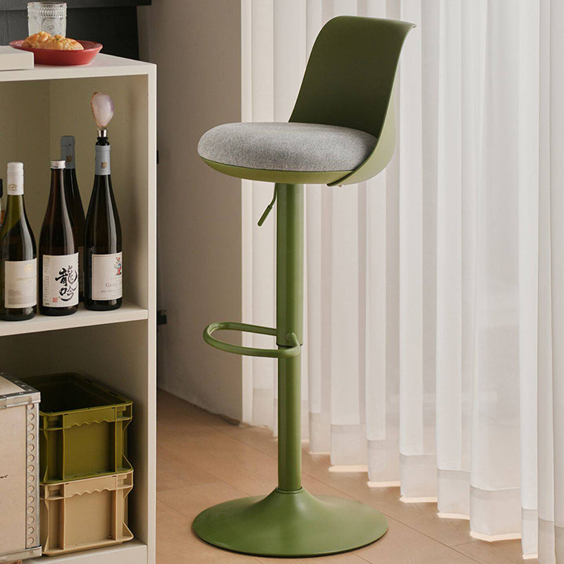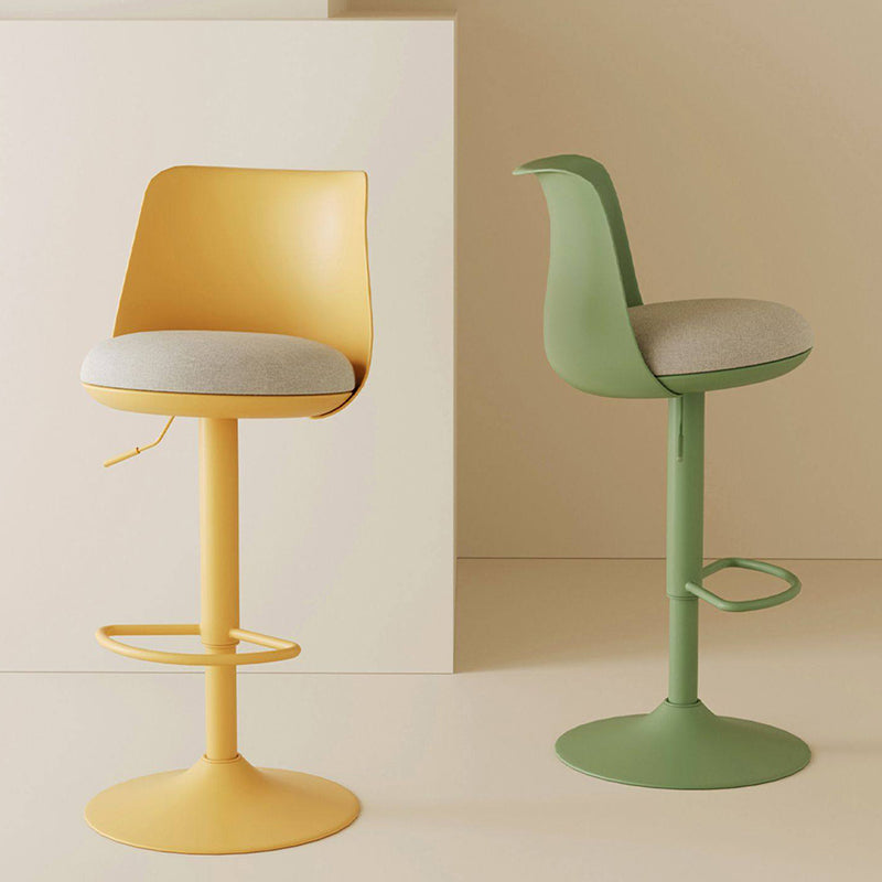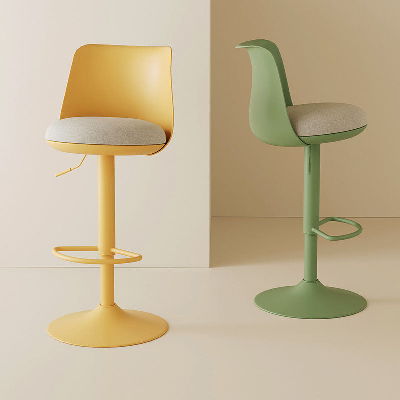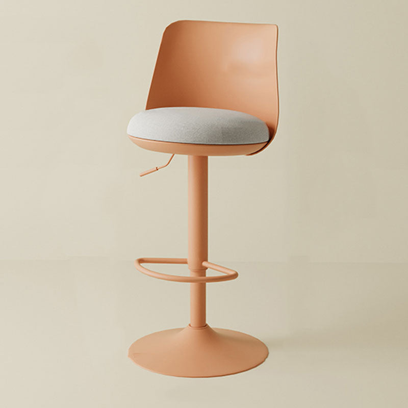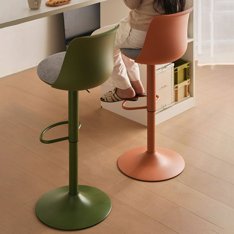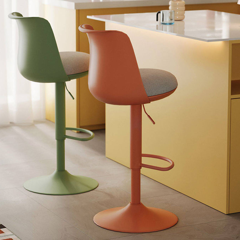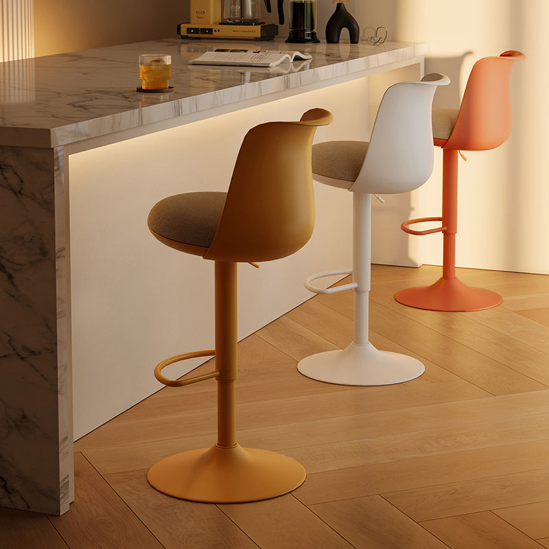 Designed for modern homes, this contemporary Nordic bar stool features a flexible PP plastic curved backrest, a sturdy rust-resistant iron frame, and a breathable linen-cotton seat padded with high-density foam for all-day comfort. The liftable height adjustment makes it ideal for dining rooms, kitchen counters, and living spaces, while multiple color options---orange, apricot brown, yellow, green, gray, black, and white---allow easy matching with any interior style.