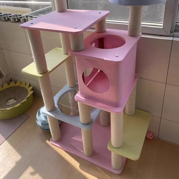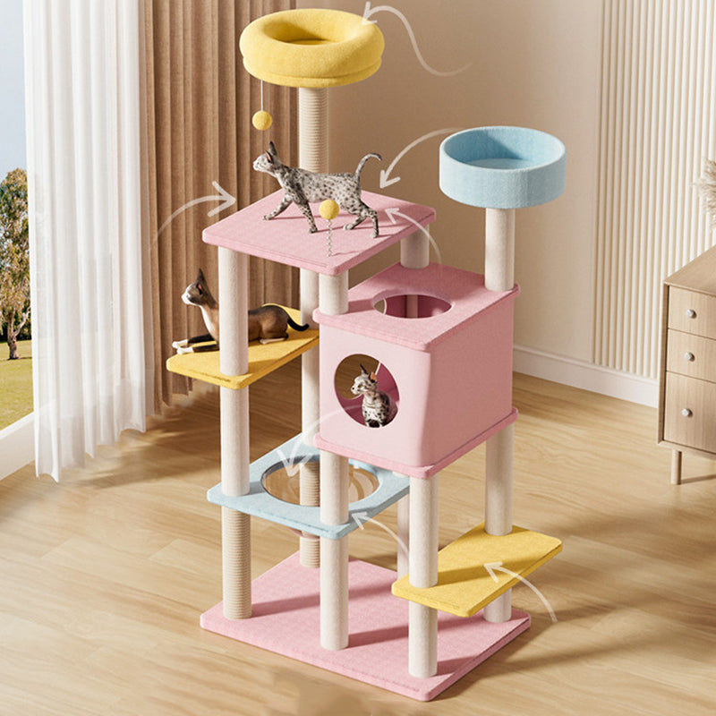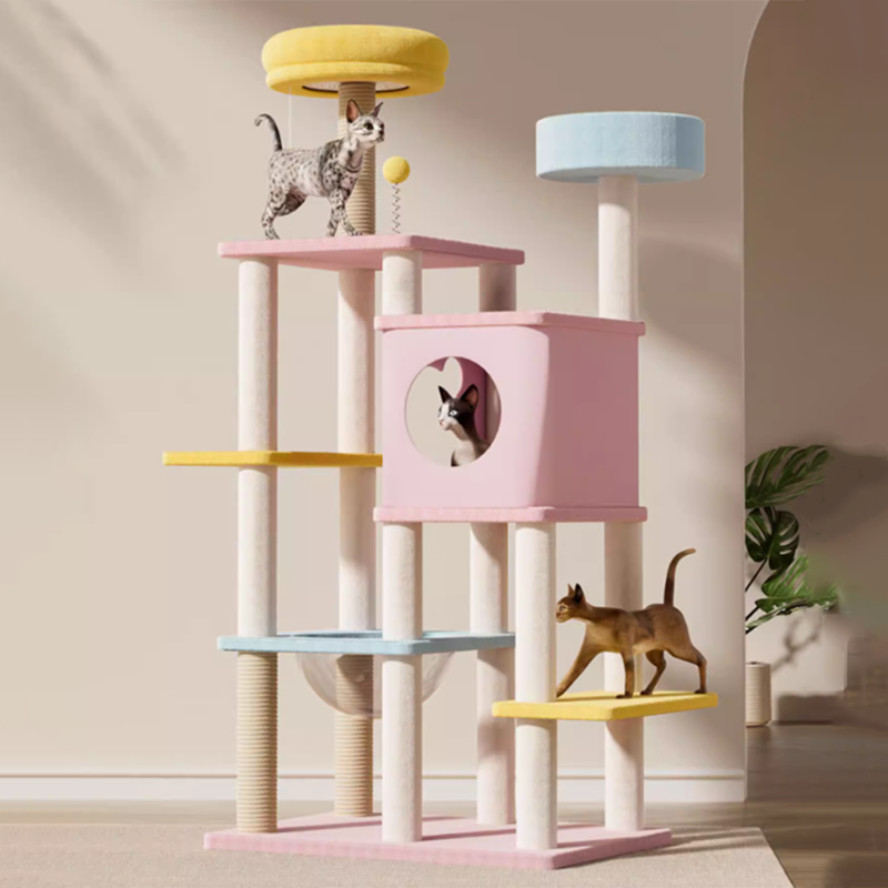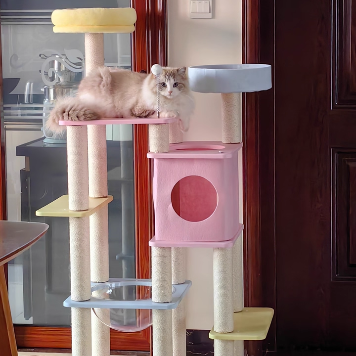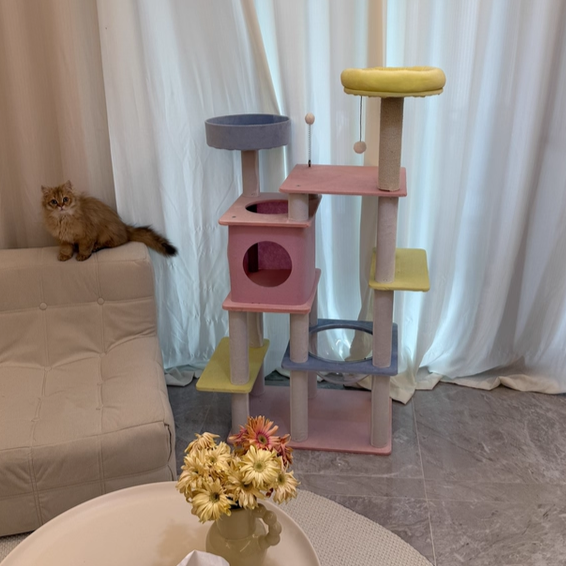 Reimagine your pet’s playtime with the Chroma Condo, a contemporary rectangular cat tree that masterfully fuses high-end interior aesthetics with feline-centric engineering. Designed specifically for the modern urban home, this compact multi-level activity center eliminates the bulk of traditional towers, offering a sleek, "clean-line" silhouette that fits perfectly into tight corners or under-utilized spaces. Available in a vibrant palette of Soft Blush Pink, Sun-Kissed Yellow, and Sky Blue, this unit serves as a functional "pop of color" for your living room or bedroom, replacing beige carpeted eyesores with a bold, designer-inspired statement.
