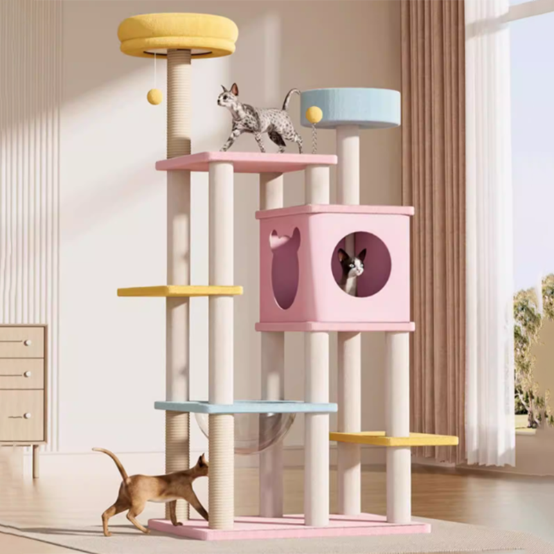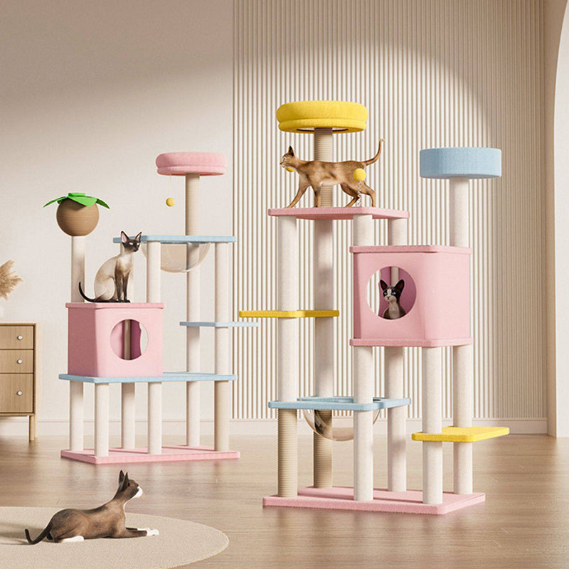 Engineered to handle the "Zoomie" hour, this high-capacity cat station features a reinforced structural core that supports a maximum load of 20kg (44 lbs), making it the ultimate "Zero-Wobble" solution for multi-cat households. The integrated design features a curated mix of velvety-soft plush lounging zones for deep naps and premium natural sisal scratching surfaces to encourage healthy grooming habits. Each tier is strategically positioned to provide a logical climbing path for cats of all ages, ensuring maximum vertical territory in a minimal horizontal footprint. This is the premier choice for shoppers seeking space-saving cat trees, modern aesthetic pet furniture, heavy-duty multi-cat towers, and colorful apartment-friendly cat scratchers.
