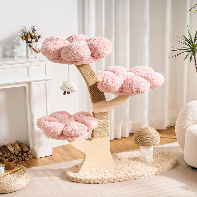 Transform your pet’s play area into a whimsical indoor garden with the Petal Perch, a flower-shaped activity center that balances boutique aesthetics with high-performance durability. This 2-level vertical retreat is meticulously engineered with a heavy-duty solid wood plywood frame, offering a "rock-solid" foundation that far outlasts standard cardboard or plastic towers. Featuring plush, petal-rimmed lounging tiers, it provides a secure, "nest-like" feeling that cradles your cat during deep sleep. Available in Soft Blossom Pink and Alabaster White, this sculptural tree adds a touch of "Cottagecore" charm to your living room or bedroom, serving as both a functional climber and a chic home accent.