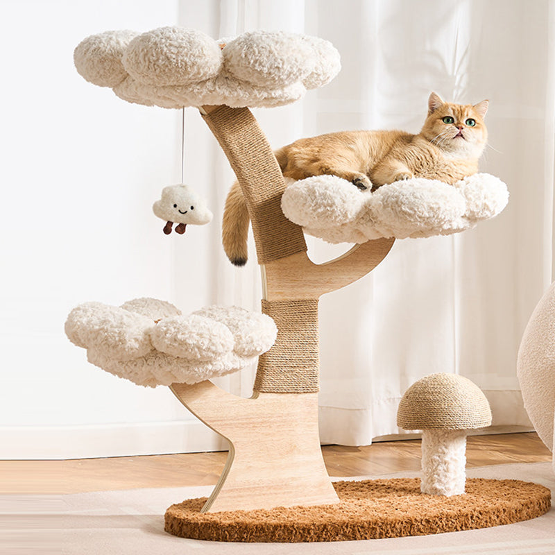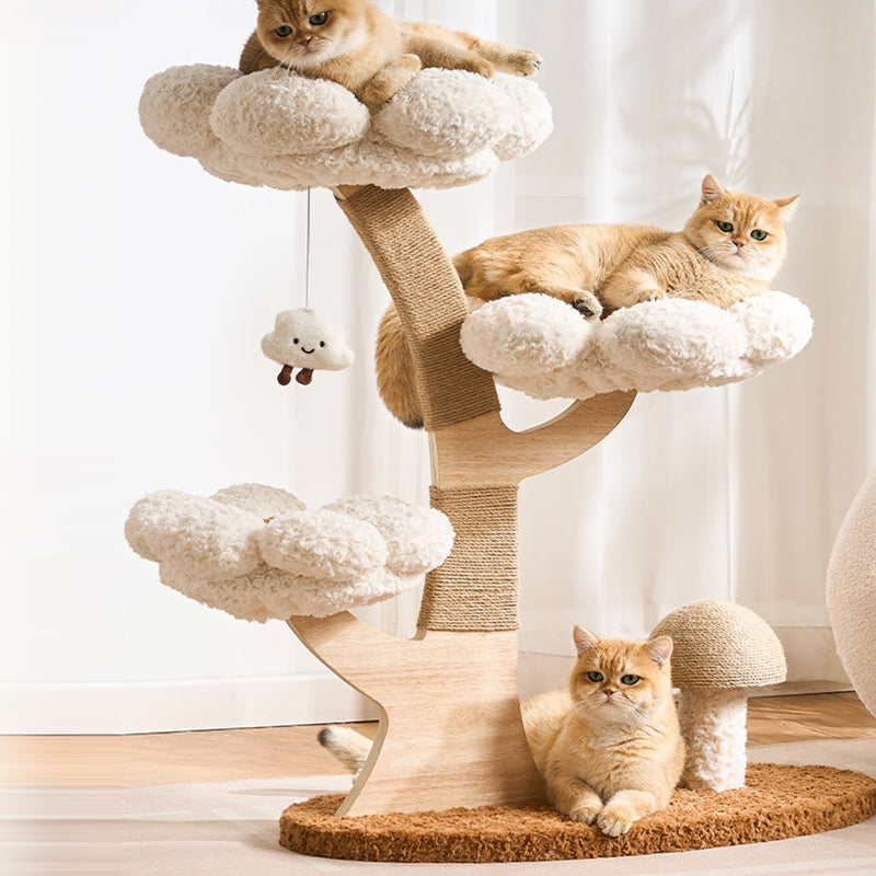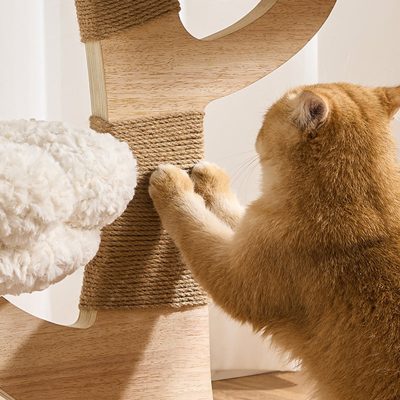 Built for the "active napper," this high-capacity cat tower boasts a staggering 30kg (66 lbs) total weight limit, making it safe for multi-cat households or large breeds up to 8kg (18 lbs). To satisfy natural instincts, the structural pillars are wrapped in premium natural jute rope, a sustainable and rugged alternative to sisal that offers superior grip for climbing and a satisfying texture for daily scratching. The tiered "bloom" design encourages healthy movement, allowing your cat to leap from the sturdy base to the elevated observation deck. This is the premier choice for North American shoppers seeking aesthetic flower cat trees, solid wood pet furniture, heavy-duty jute scratching posts, and modern multi-level cat climbers.