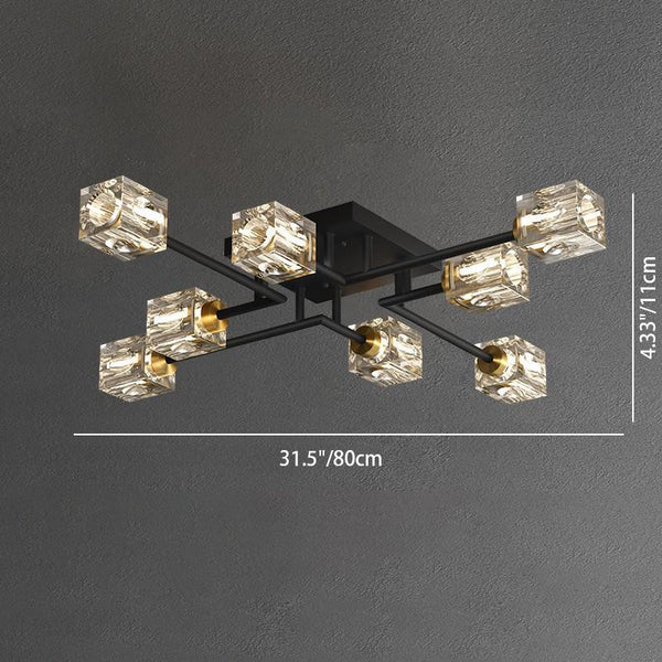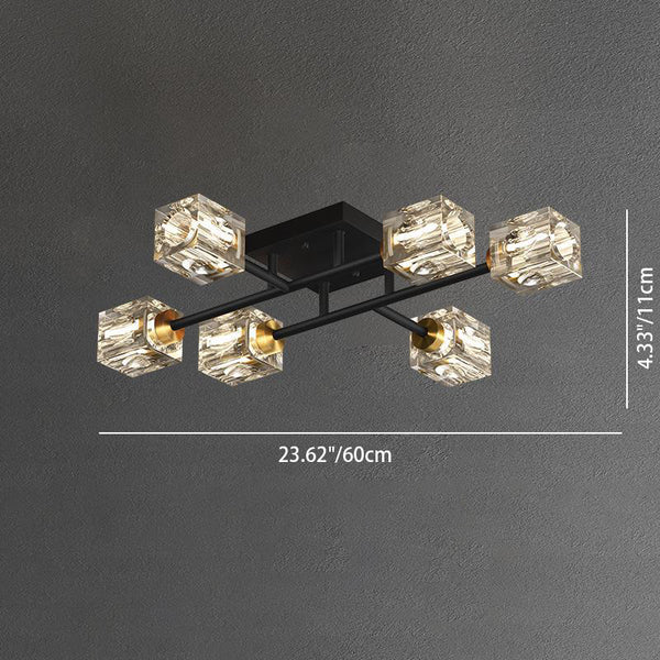 Contemporary Luxury Branch Rectangle Full Copper Crystal 4/6/8 Light Semi-Flush Mount Ceiling Light For Living Room