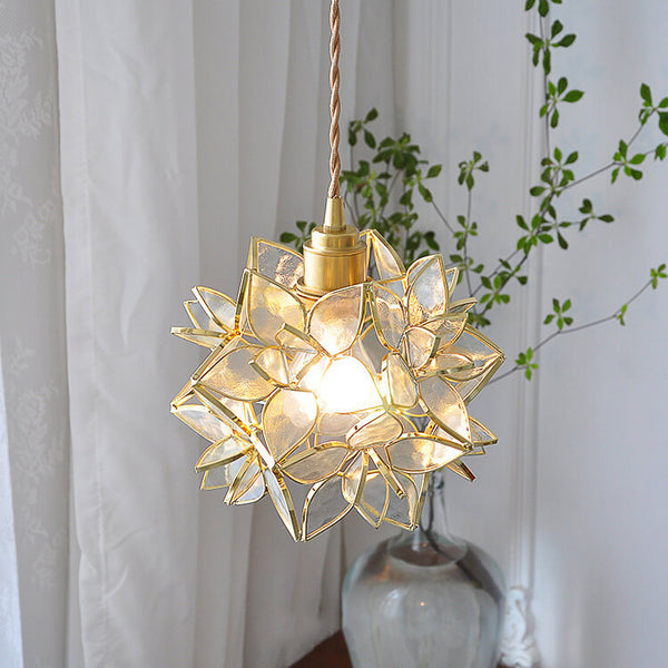 French Luxury Glass Gardenia Petal Ball 1-Light Pendant Light