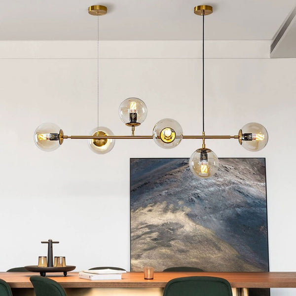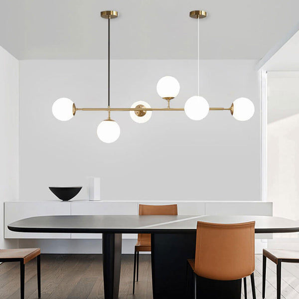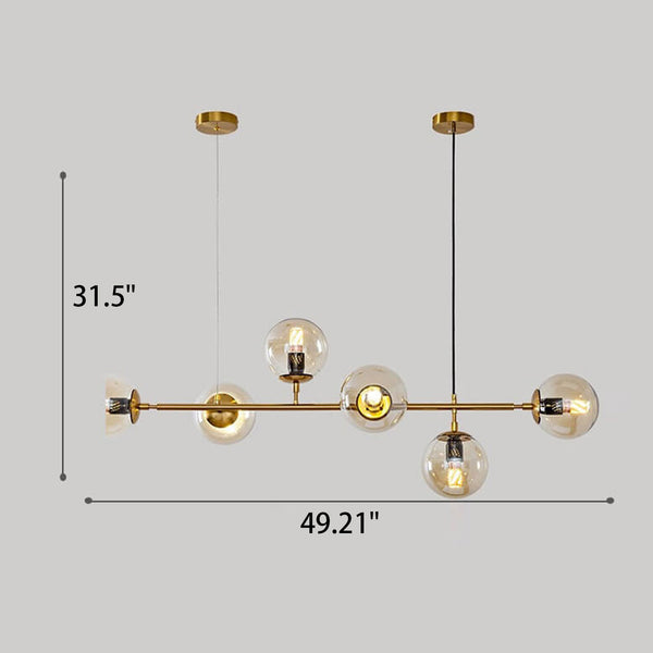 Modern Minimalist Long Glass Round Globe Island Light 6-Light Chandelier