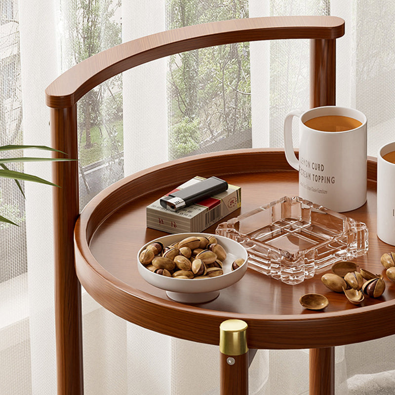 Crafted with a blend of natural bamboo and durable MDF, this traditional Chinese-style round side table brings timeless charm to the modern home. The warm brown finish highlights a practical two-tier design, perfect for both organized storage and curated displays. Featuring a removable tabletop and smooth 360° swivel casters, this versatile piece offers effortless mobility and compact functionality for any living room or bedside arrangement.