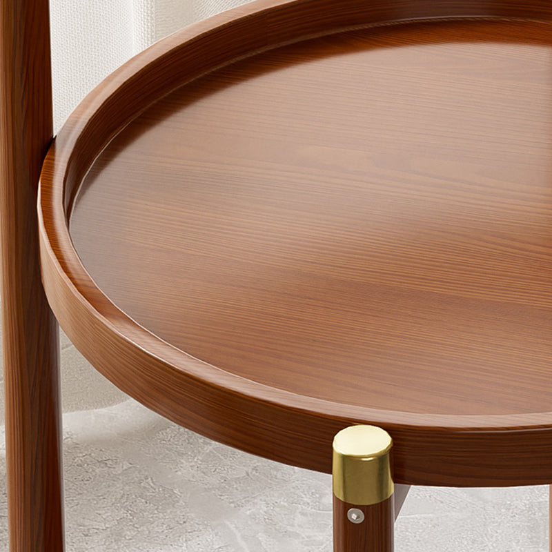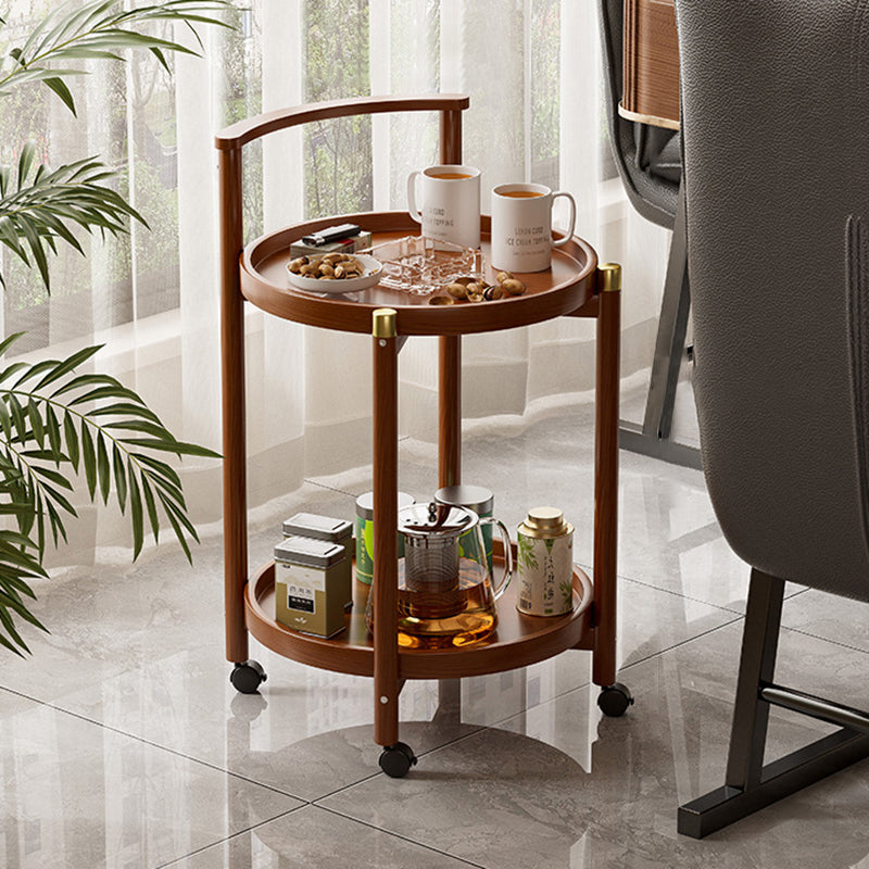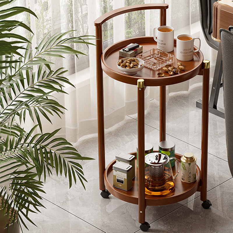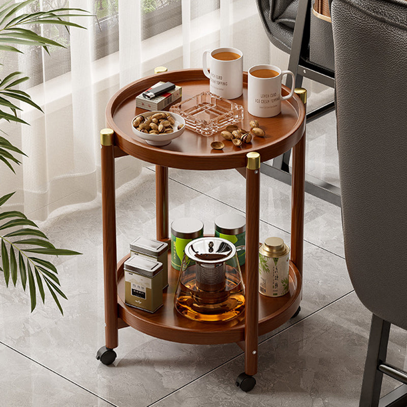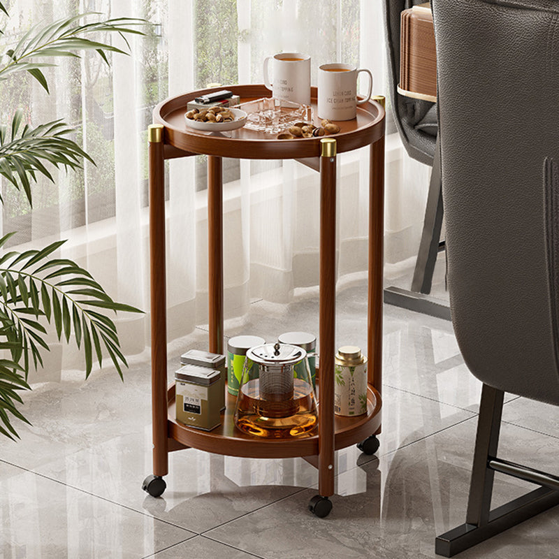 Traditional Chinese Cylindrical Bamboo Medium Density Fiberboard Movable Side Table 2-Tier For Living Room