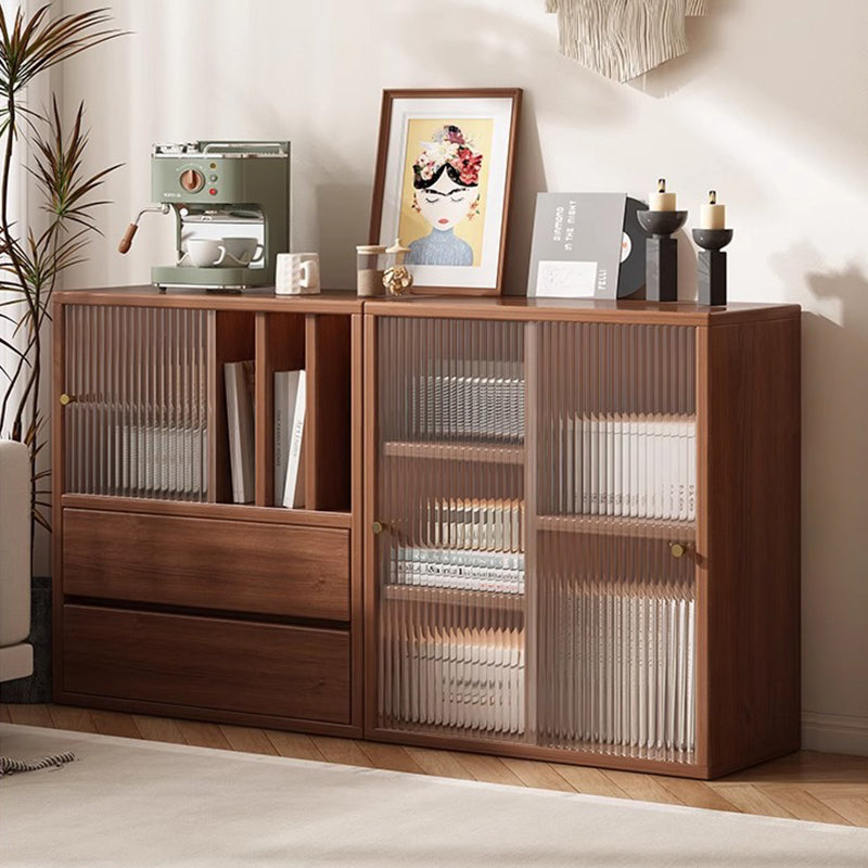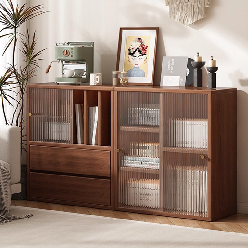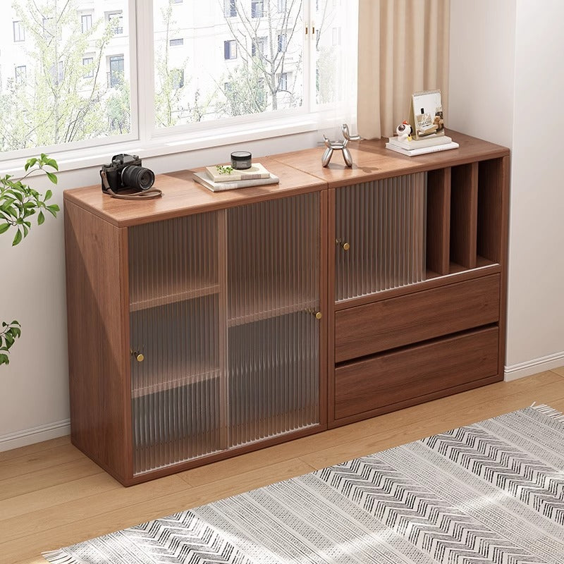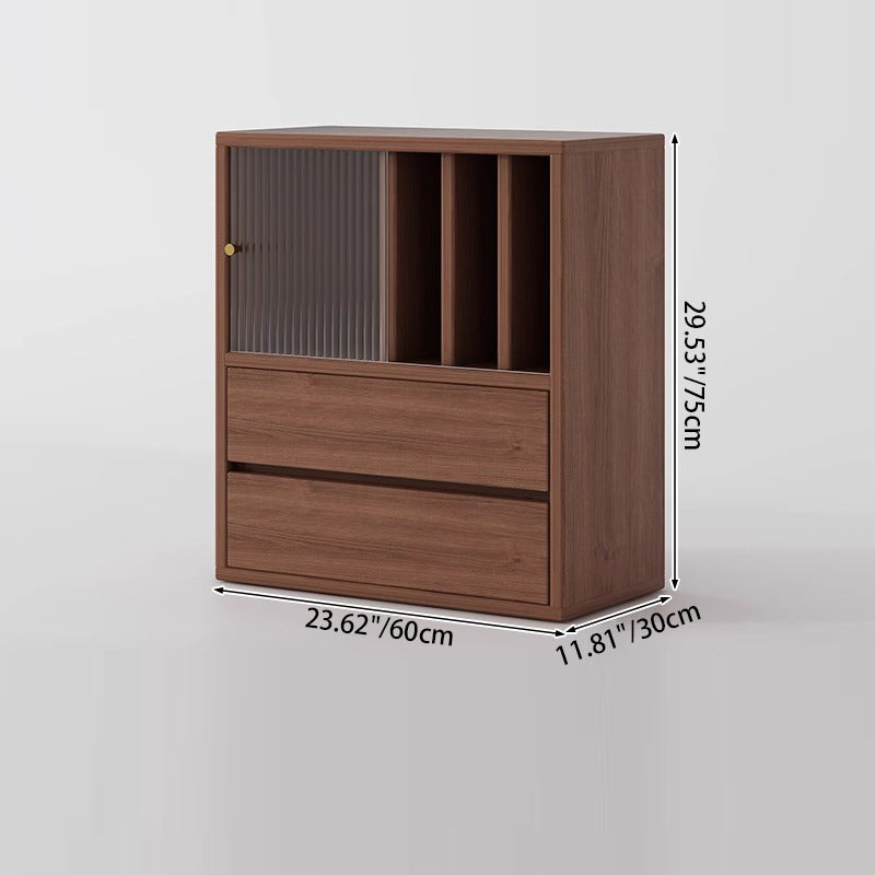 This Traditional Chinese square storage cabinet is made from eco-friendly board with acrylic sliding doors, featuring 2 spacious drawers for organized storage in the living room or dining area. Finished in pine wood tone or black, its floor-standing structure increases load stability, while the dust-proof acrylic panels and multifunctional layout deliver both practicality and a refined vintage-inspired aesthetic.