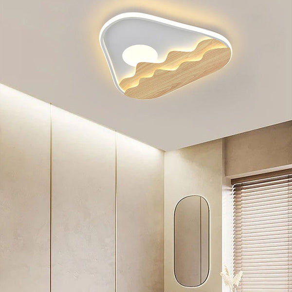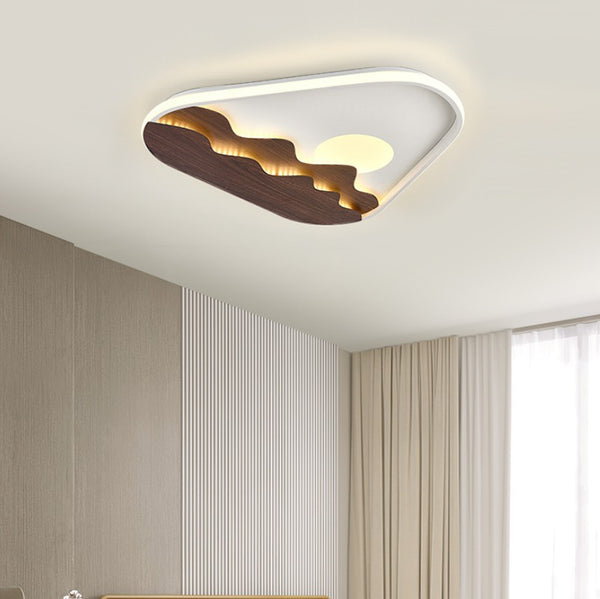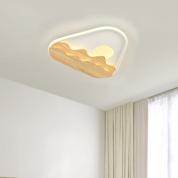 Modern Minimalist Landscape Triangle Wood Acrylic LED Flush Mount Lighting