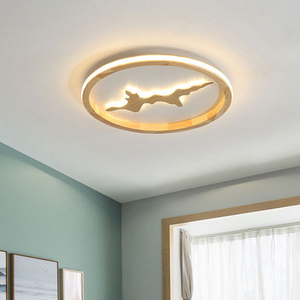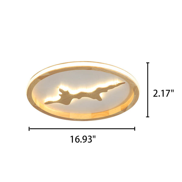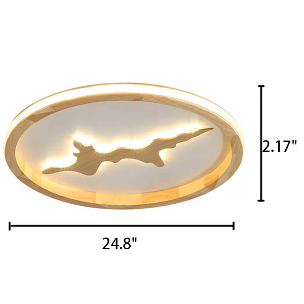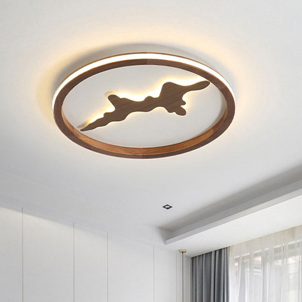 Nordic Round Solid Wood Zen LED Flush Mount Ceiling Light