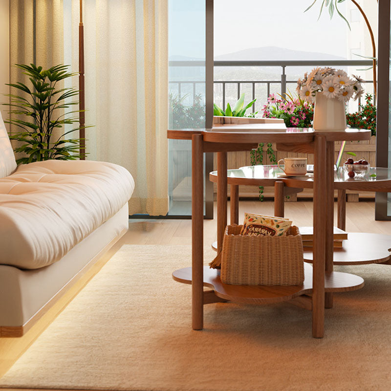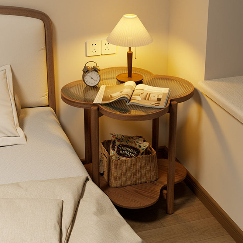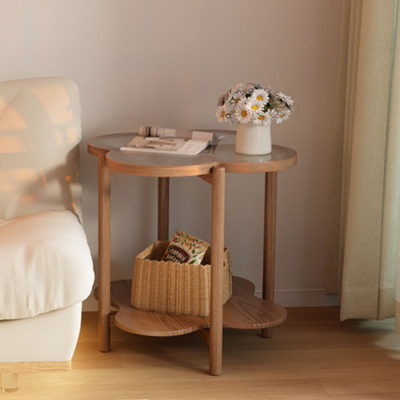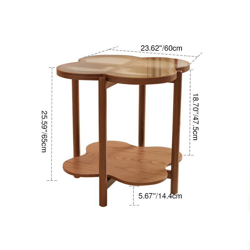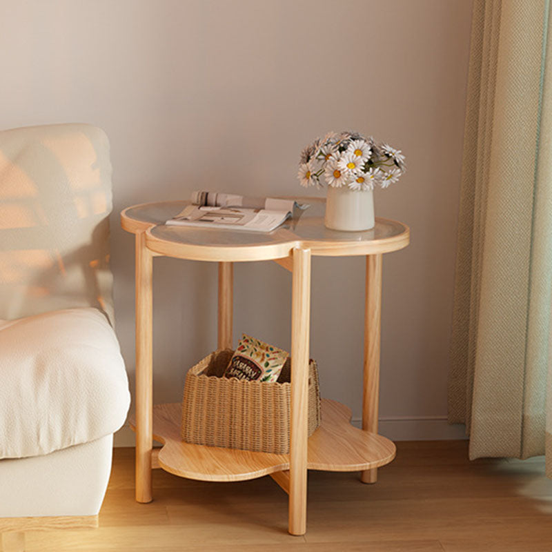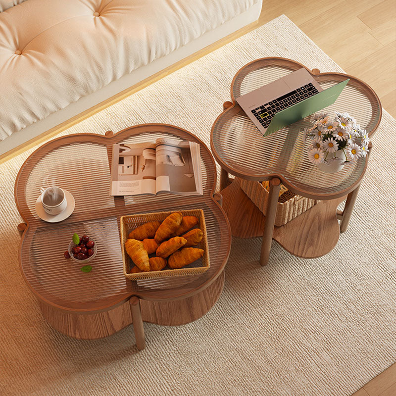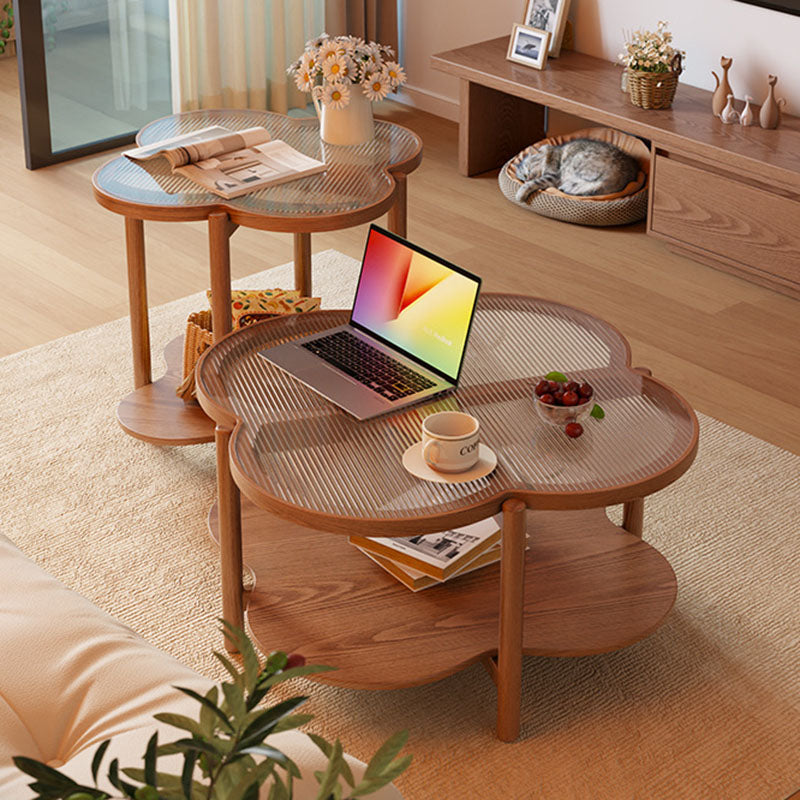 Contemporary Scandinavian Quatrefoil-Shaped Fluted Glass Rubberwood Solid Wood Coffee Table 2-Tier For Living Room