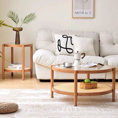Contemporary Retro Round Gourd Base Solid Wood Coffee Table For Living Room