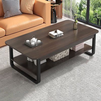 Modern Minimalist Rectangular Plate Steel Coffee Table 2-Tier For Living Room