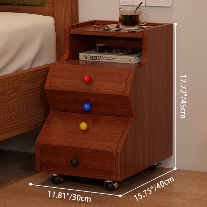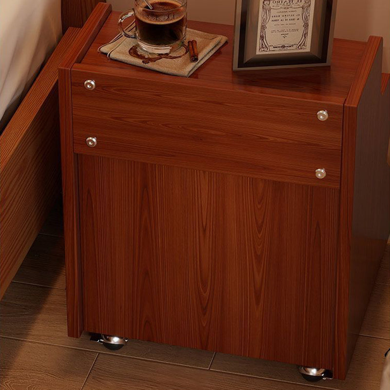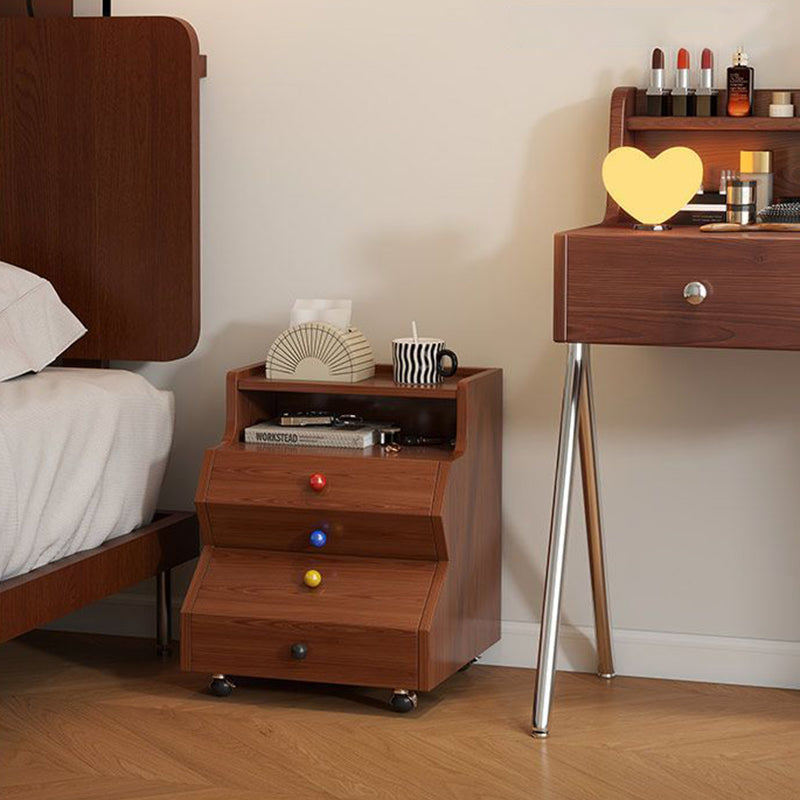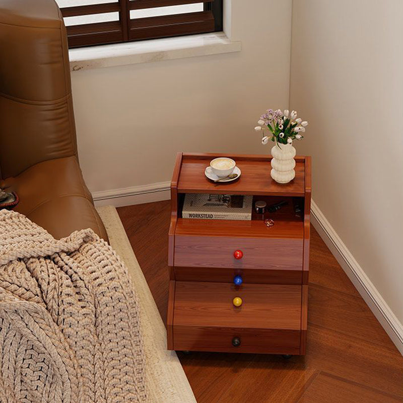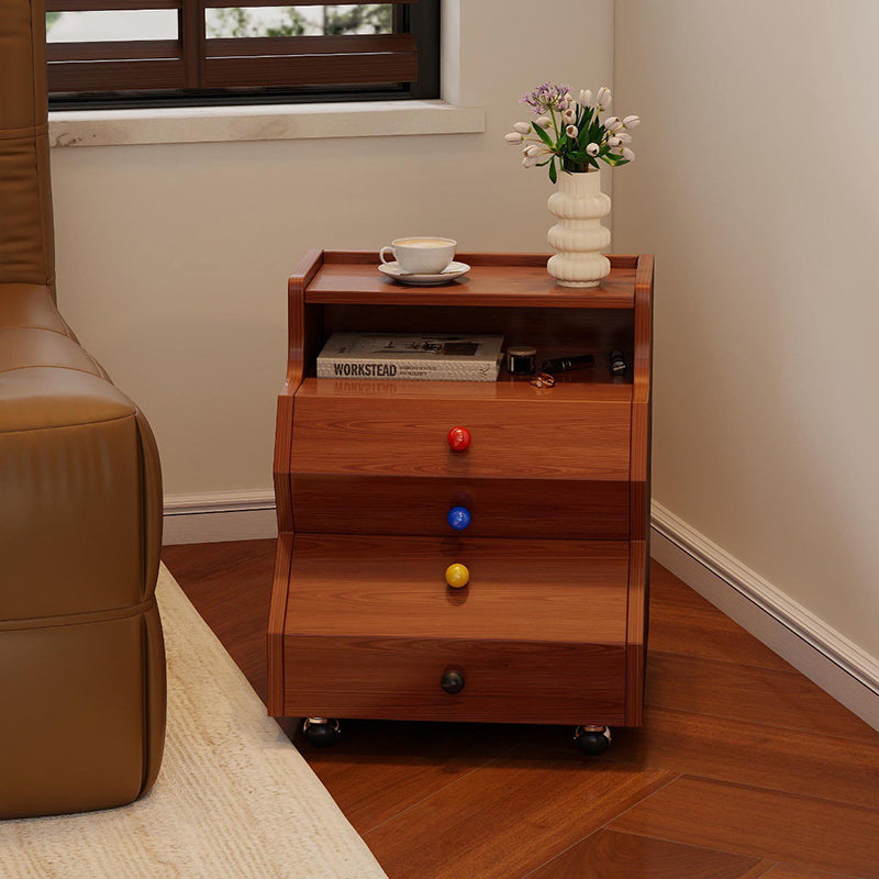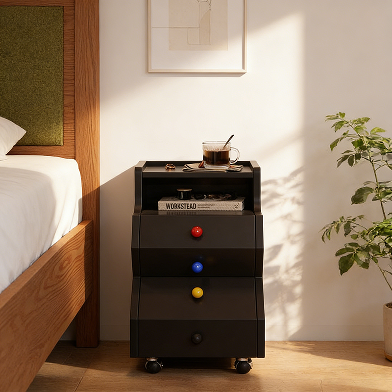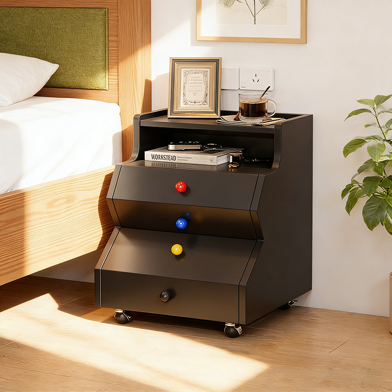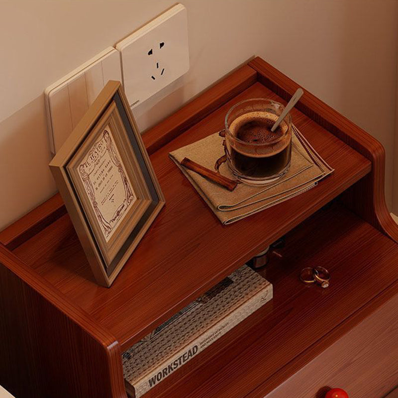 This contemporary nightstand offers a perfect blend of style and utility. Crafted from durable solid oak, its compact, rectangular design maximizes space while providing generous storage via two smooth drawers and a two-tier open shelf. Finished in rich, vintage-inspired brown and black tones, this piece features a stable, strong load-bearing structure. Most notably, it includes 360° swivel casters for effortless mobility, making this movable bedside cabinet a highly functional addition to any modern bedroom.