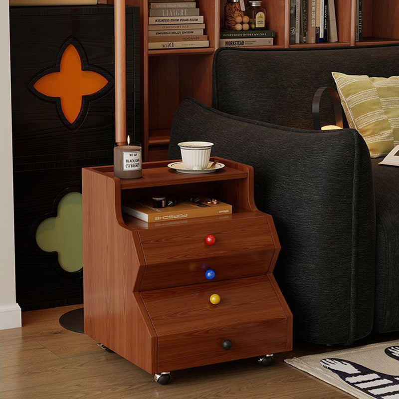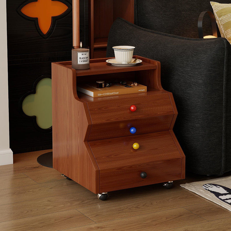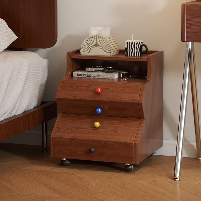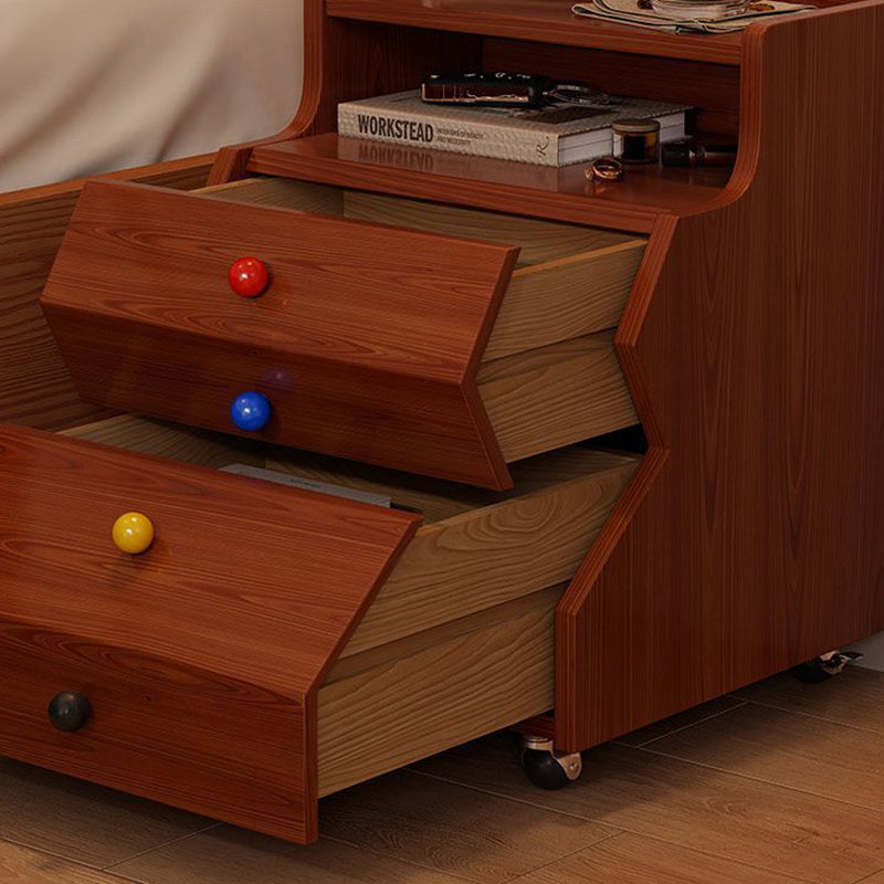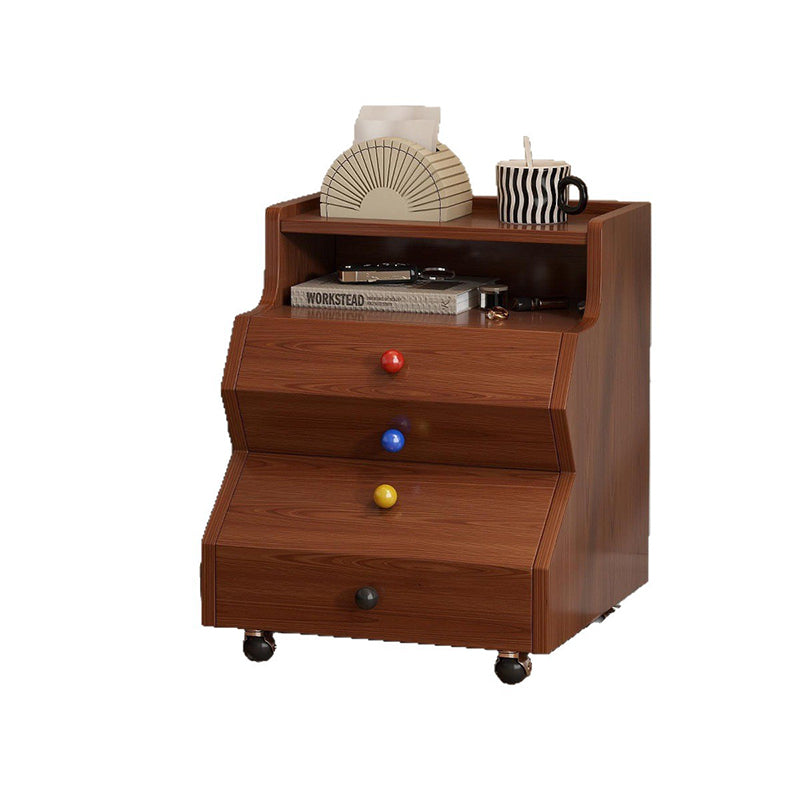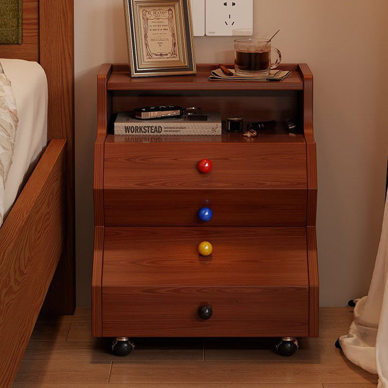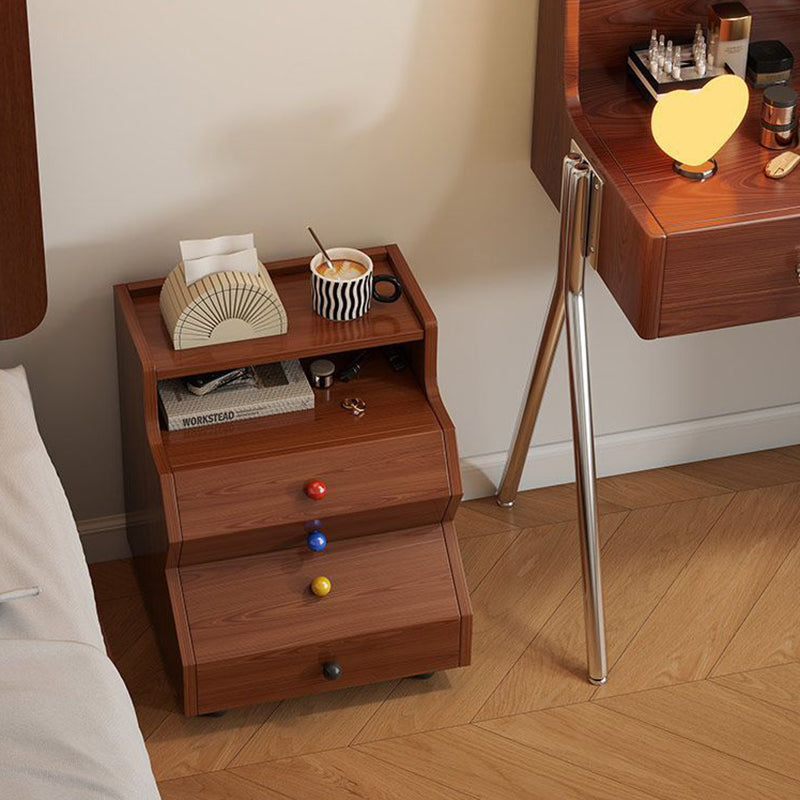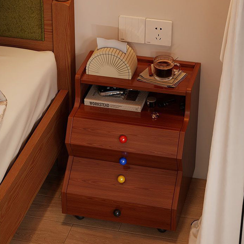 This contemporary nightstand offers a perfect blend of style and utility. Crafted from durable solid oak, its compact, rectangular design maximizes space while providing generous storage via two smooth drawers and a two-tier open shelf. Finished in rich, vintage-inspired brown and black tones, this piece features a stable, strong load-bearing structure. Most notably, it includes 360° swivel casters for effortless mobility, making this movable bedside cabinet a highly functional addition to any modern bedroom.