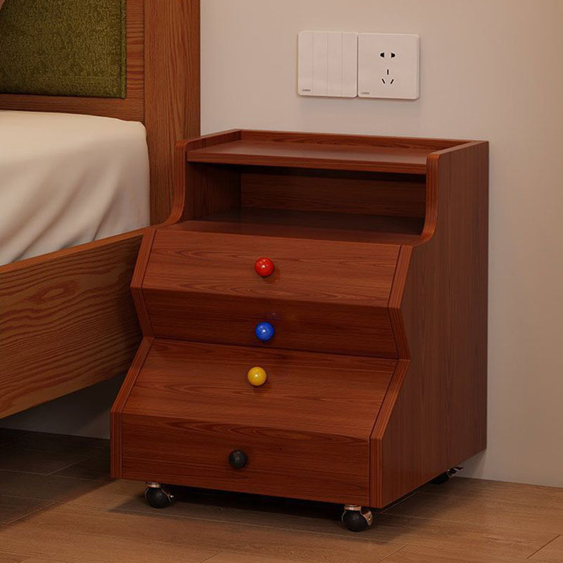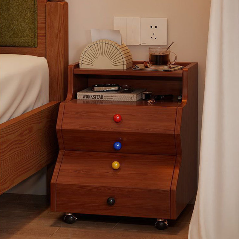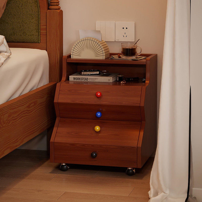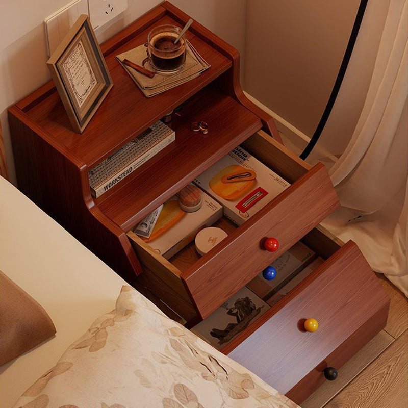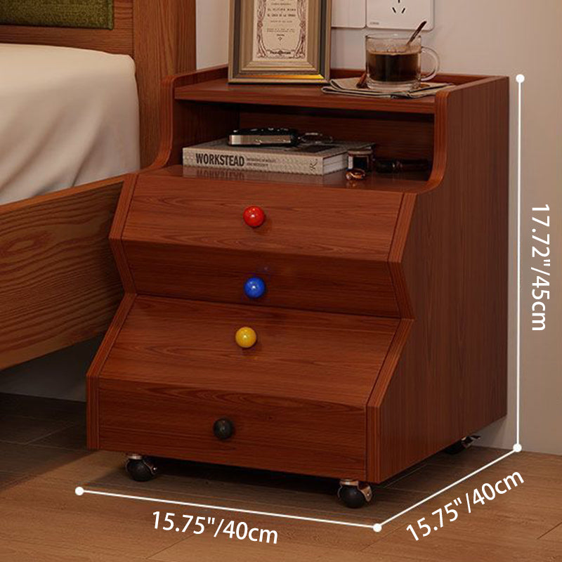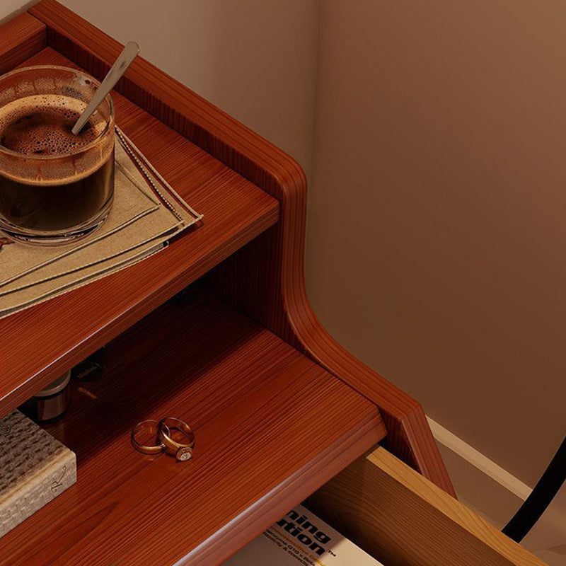 Contemporary Creative Ladder Rectangular Rubberwood Solid Wood Nightstand 2-Drawer For Bedroom