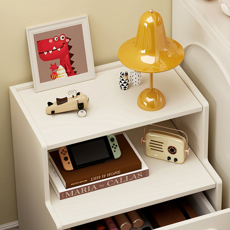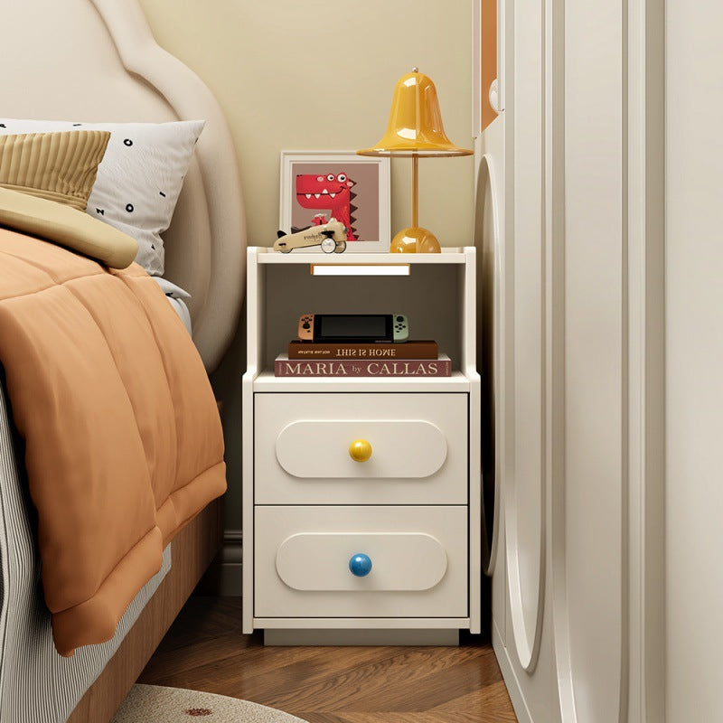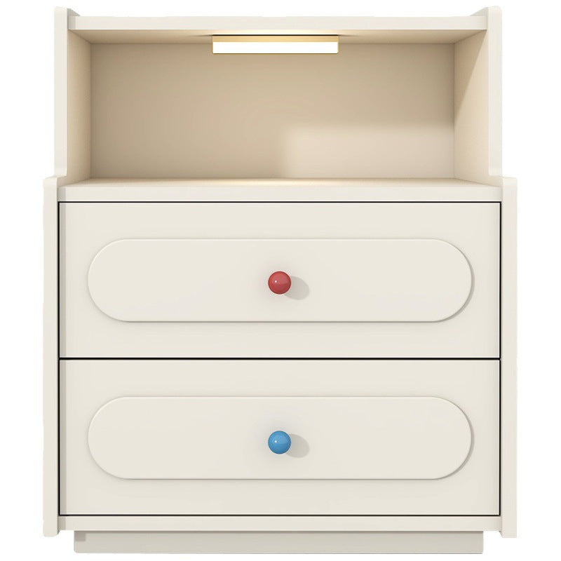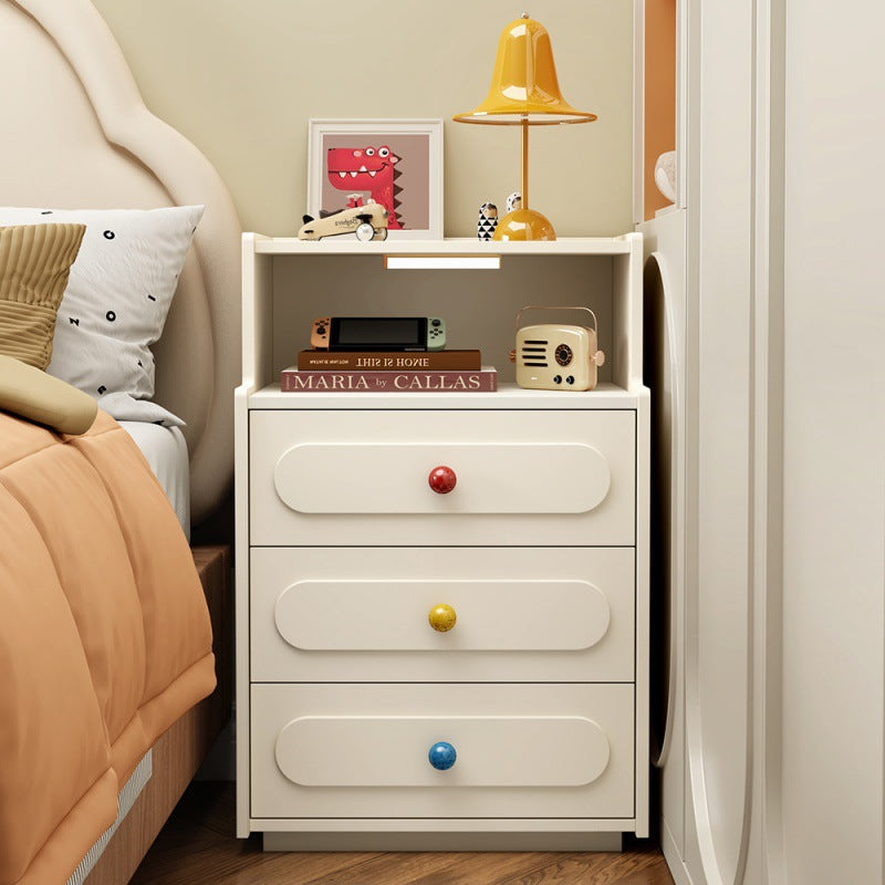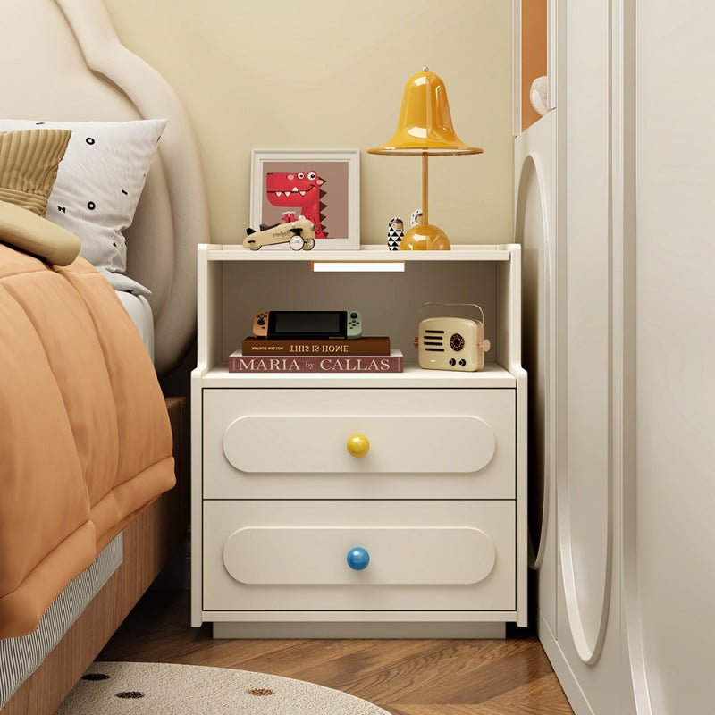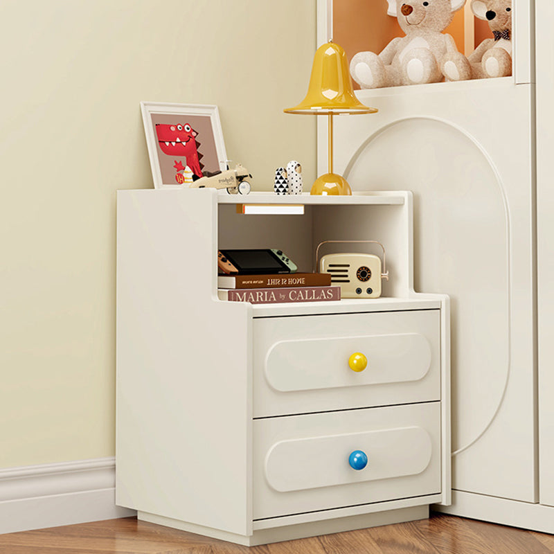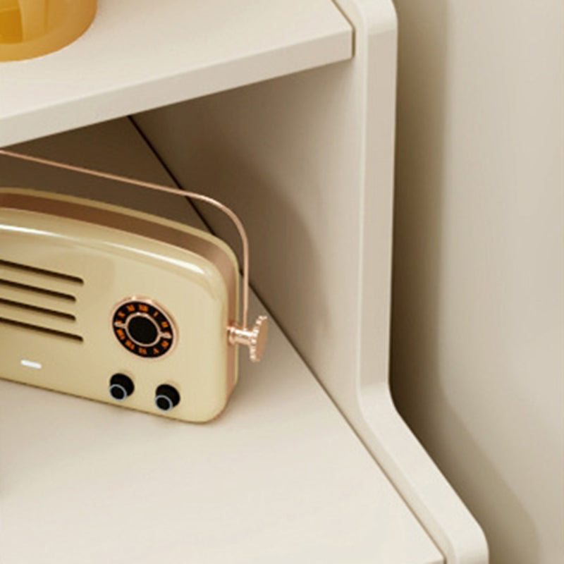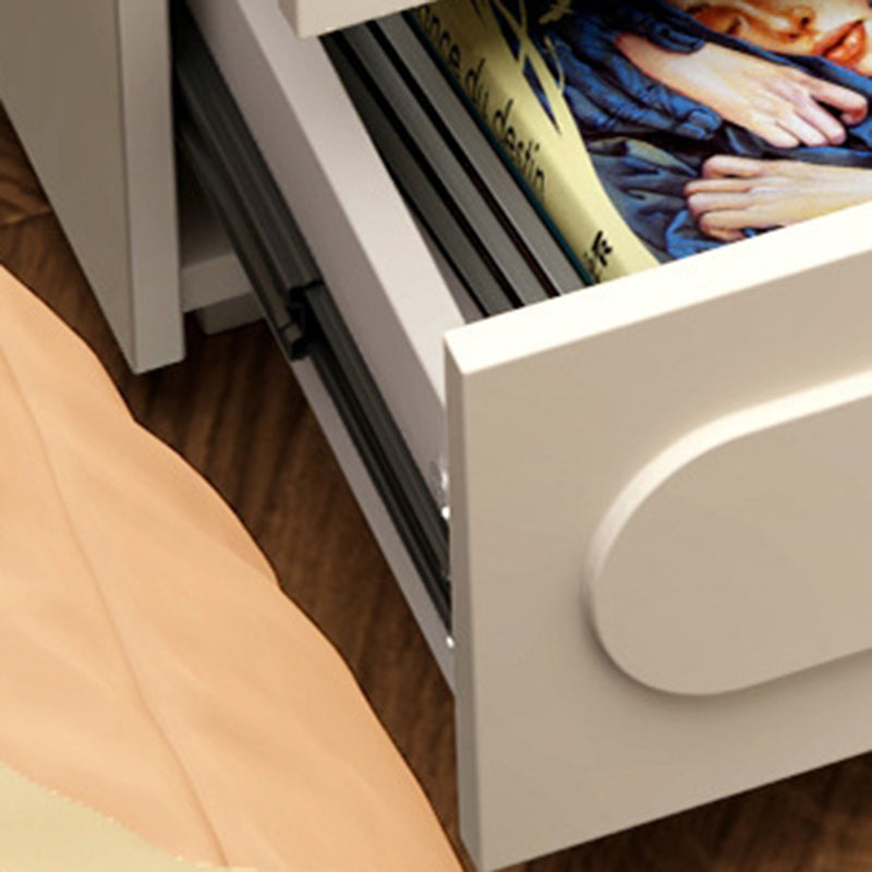 Bring modern convenience and sleek design to your bedroom with this contemporary white nightstand.