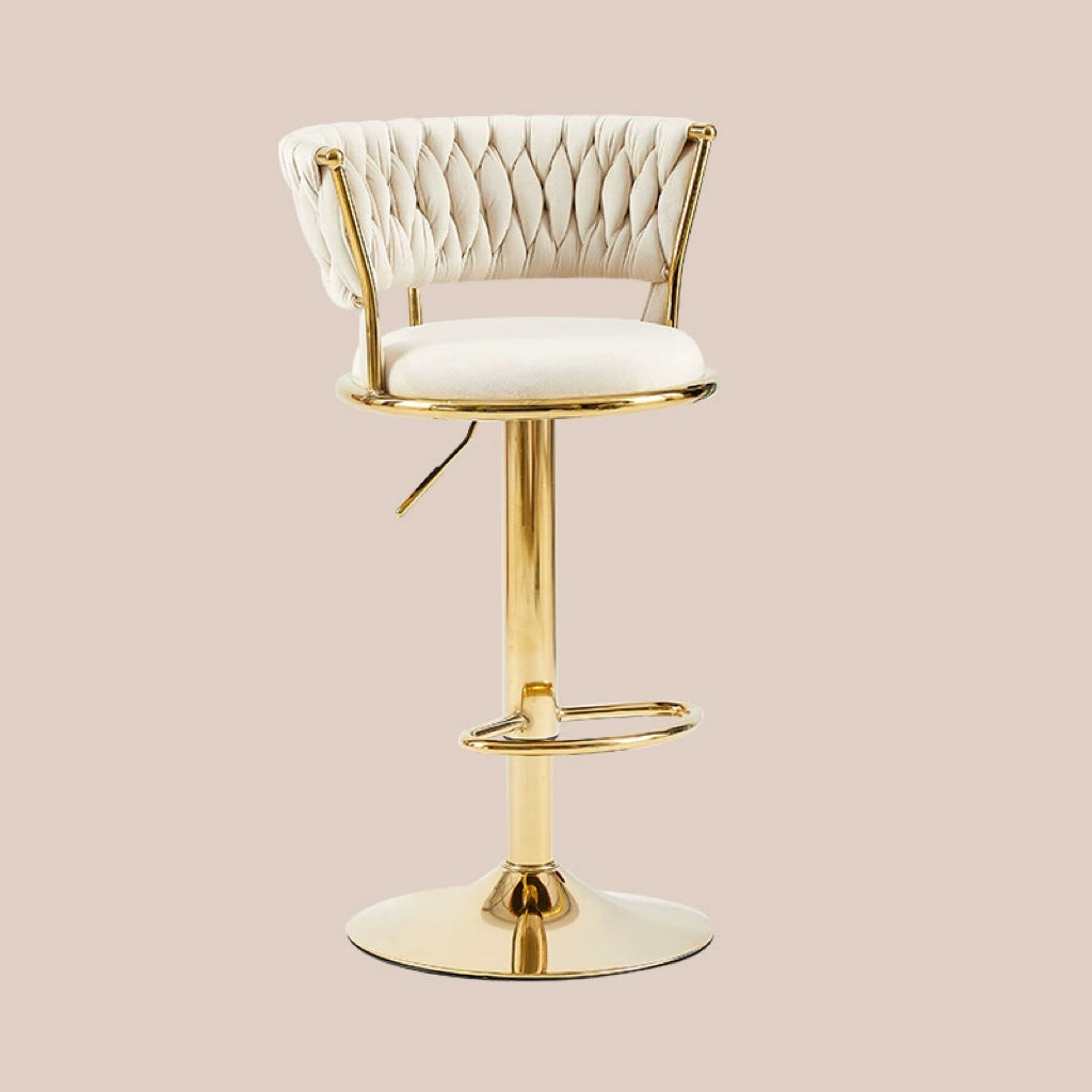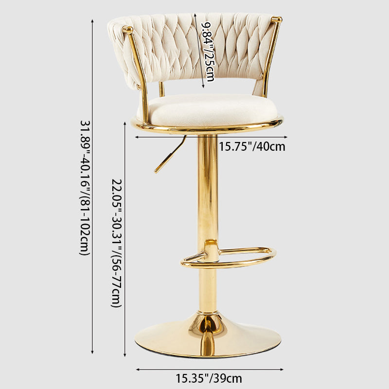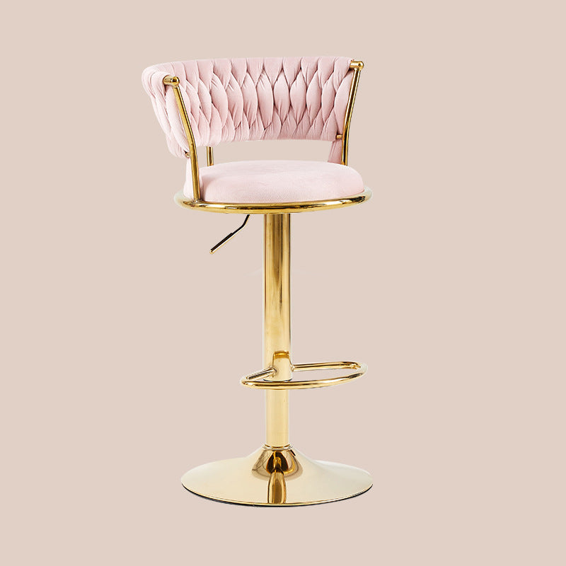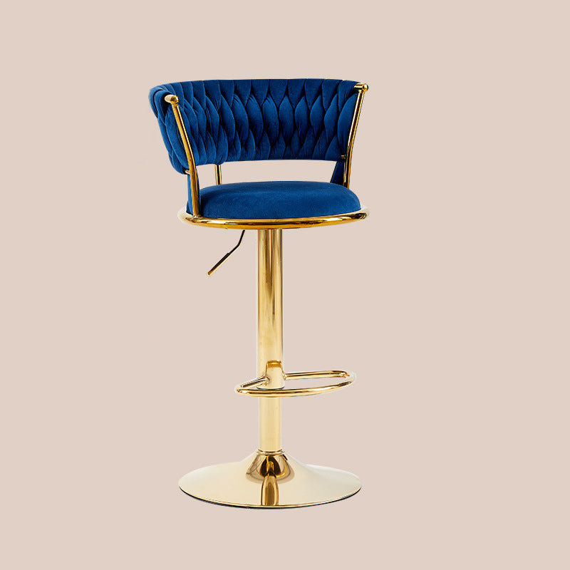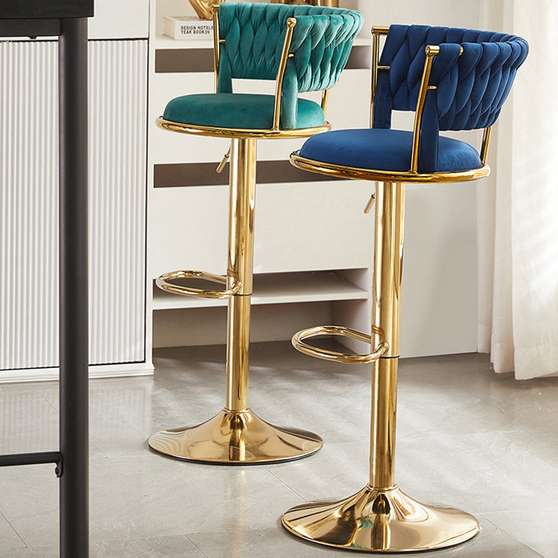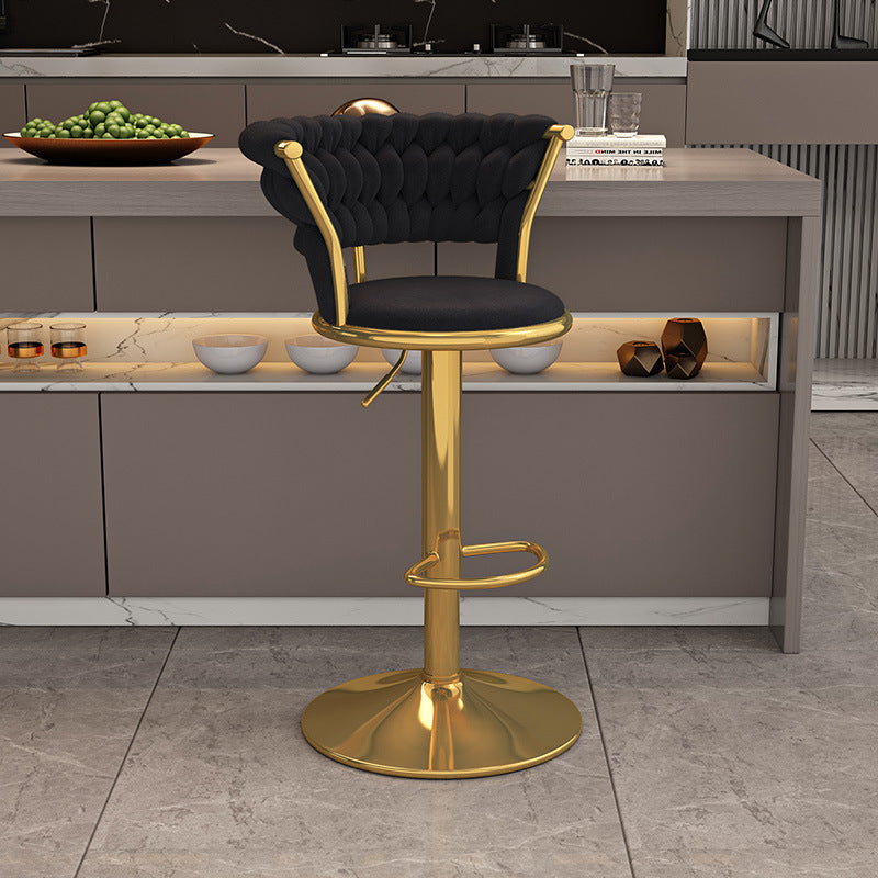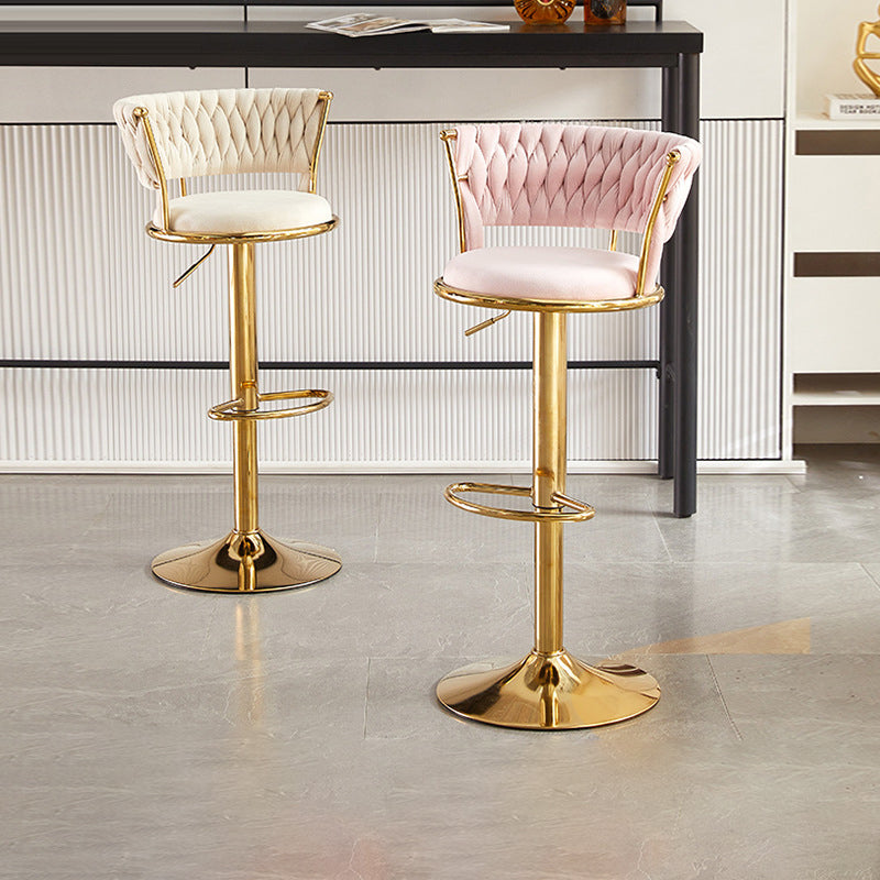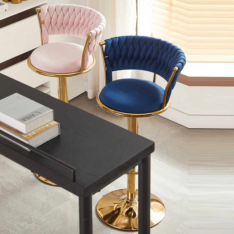 Contemporary Nordic Round Velvet Iron Swivel Height-adjustable Bar Stool Backrest Armless For Dining Room & Kitchen