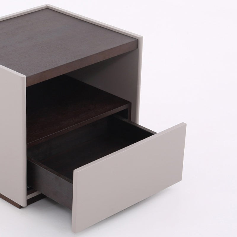 Elevate your bedroom with this exquisite minimalist Nordic nightstand, crafted in a clean rectangular silhouette and finished in a soft matte cream lacquer. The smooth, handle-free drawer blends seamlessly with the cabinet front, visually enhanced by natural wood veneer accents and built with a durable solid-wood drawer structure. Compact yet highly functional, it offers convenient, clutter-free bedside storage while keeping your essentials neatly organized. This piece is the perfect solution for modern, Scandinavian, or small-space interiors seeking a warm, refined, and streamlined look.