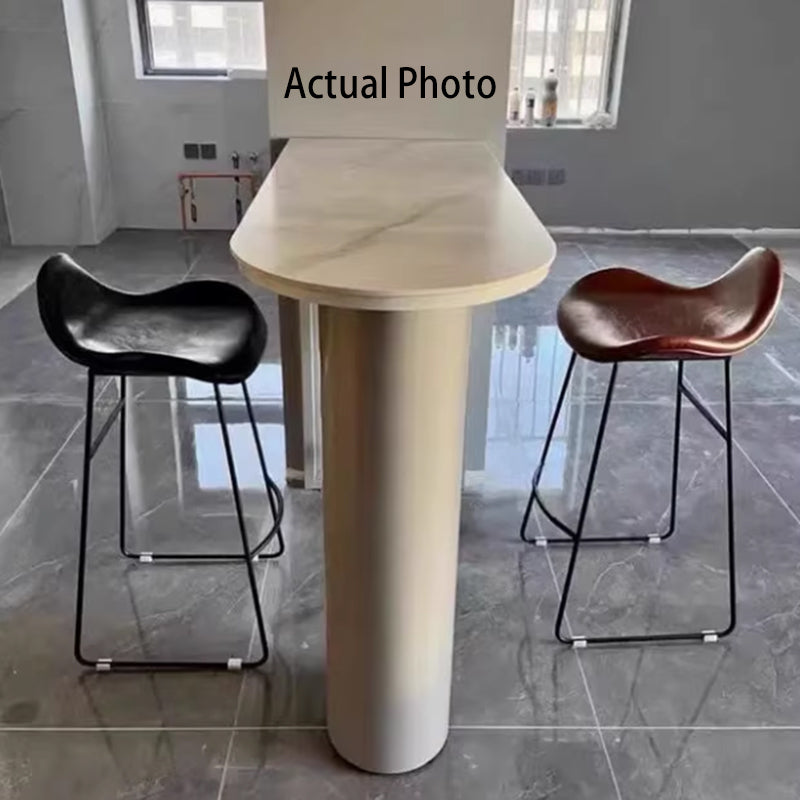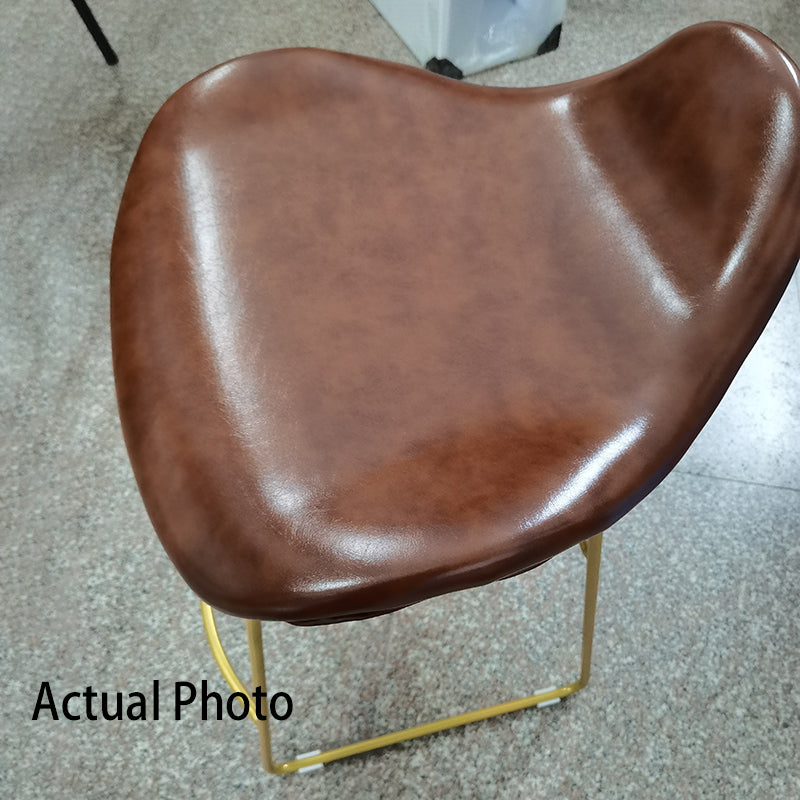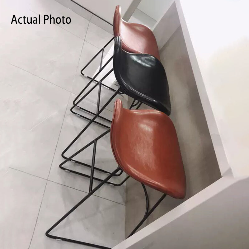 Elevate your kitchen or bar area with this contemporary Nordic bar stool, designed with a distinctive triangular leather seat in black, white, or brown, paired with a sturdy iron frame available in gold, white, or black. Featuring a comfortable backrest and built-in footrest, this high stool combines style and support for contemporary dining and entertaining spaces.