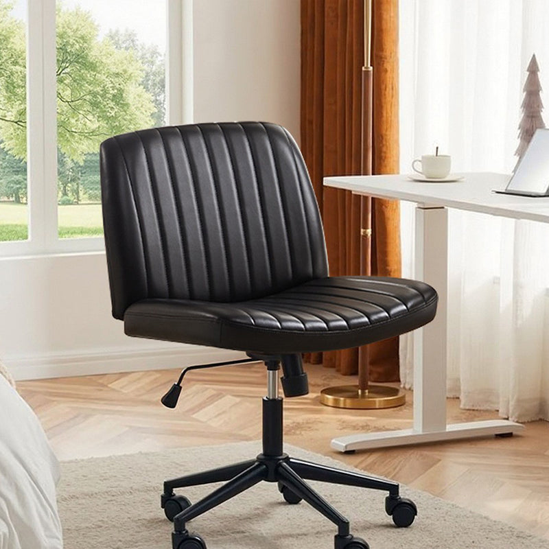 Modern Minimalist Square Rectangular Cat Scratch Leather Solid Wood Plywood Iron 360°Swivel Movable Height Adjustable Desk Chair Backrest Armless For Home Office